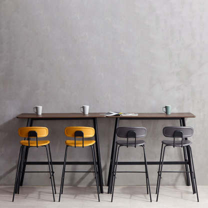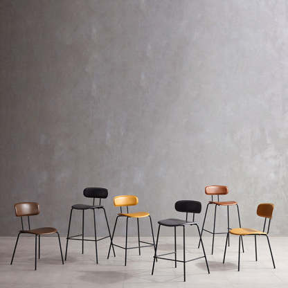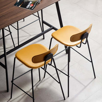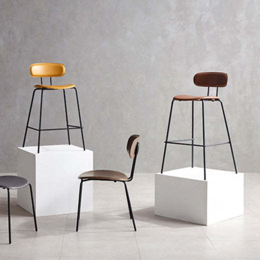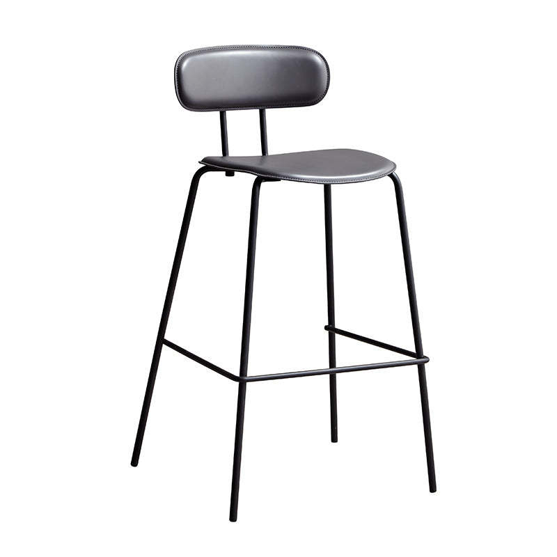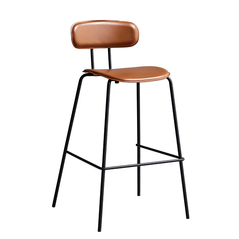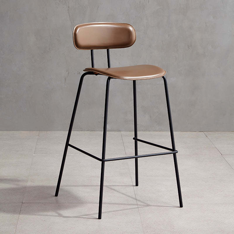 Contemporary Scandinavian Square Leather Metal Legs Bar Stool Backrest Footrest For Dining Room