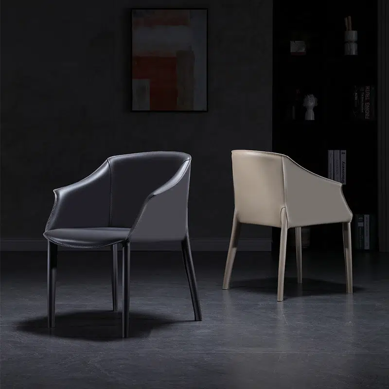 Contemporary Scandinavian Square Leather Steel Chair Backrest Armrest For Living Room