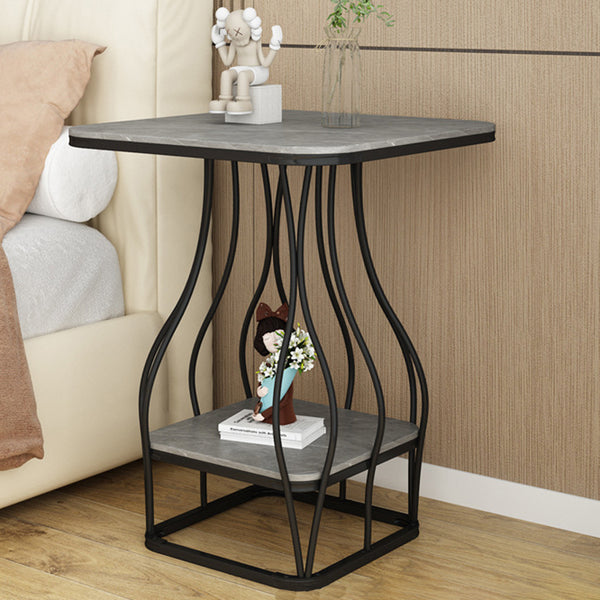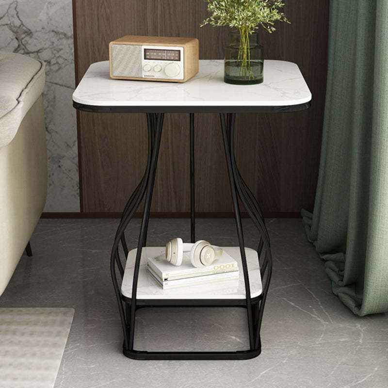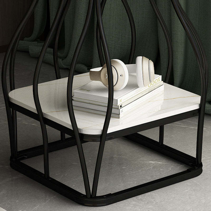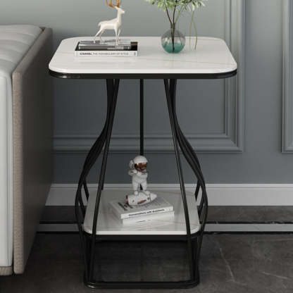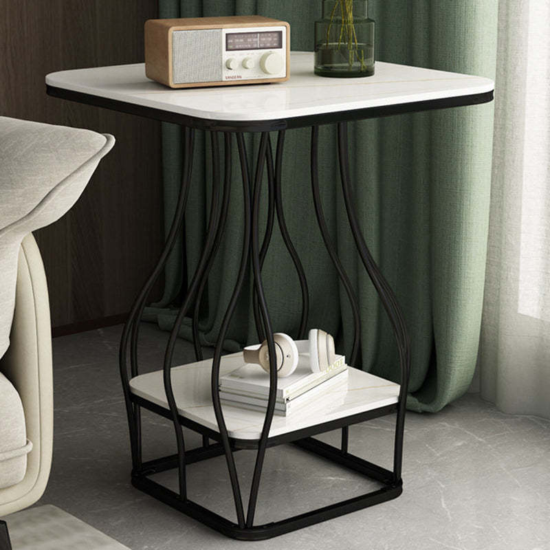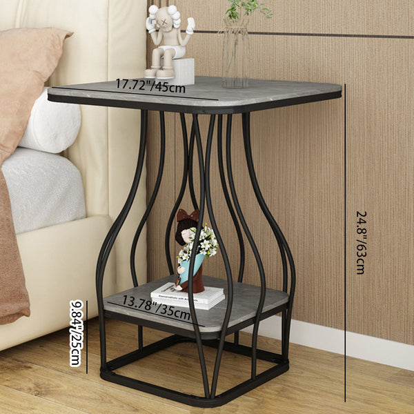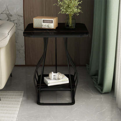 Contemporary Scandinavian Square Rock Plate Iron End Table 2-Tier For Living Room