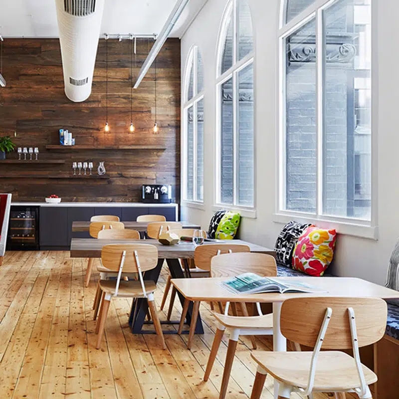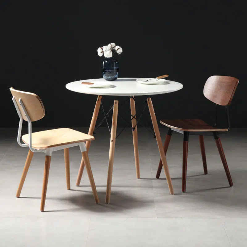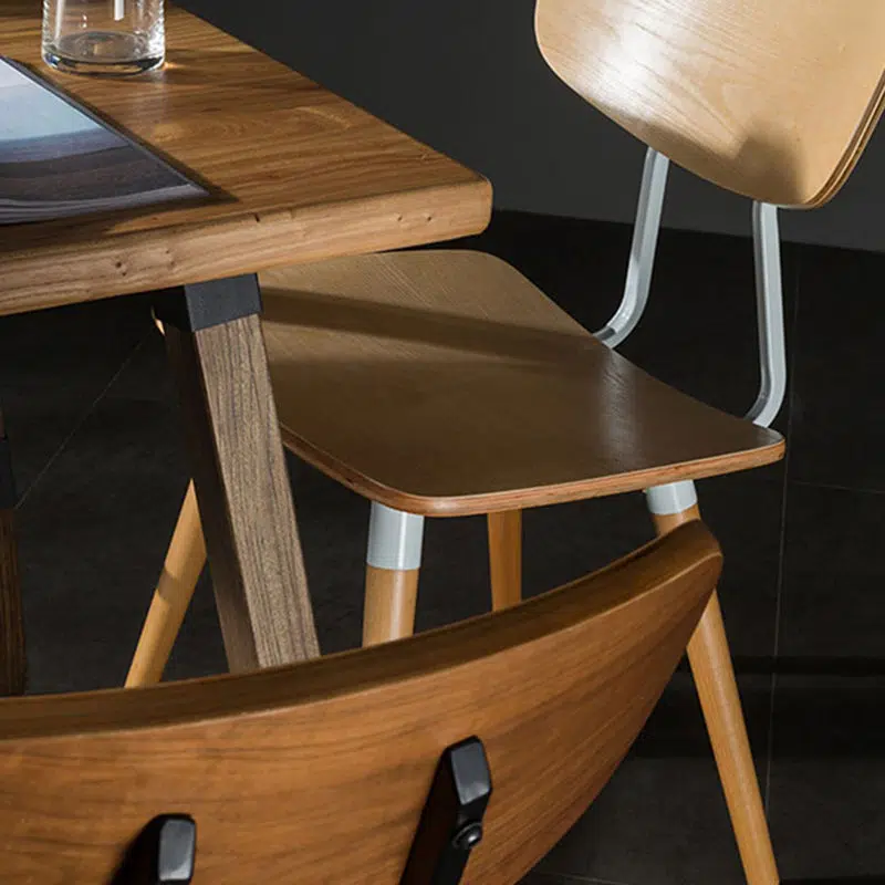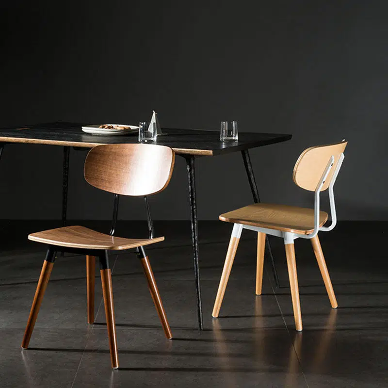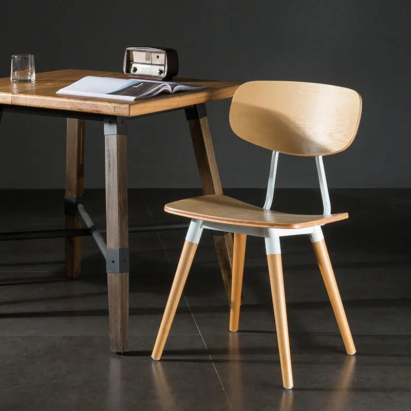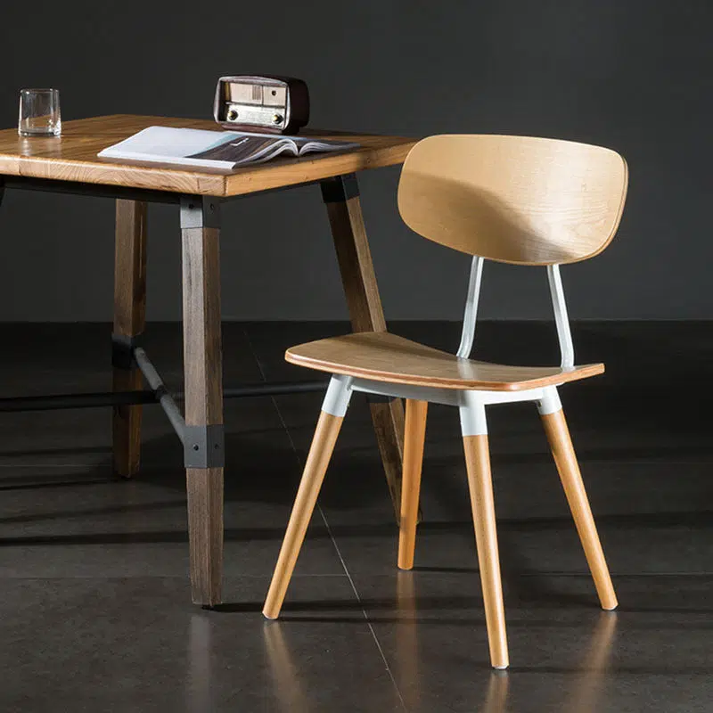 Contemporary Scandinavian Square Wood Iron Chair Backrest Armless For Living Room