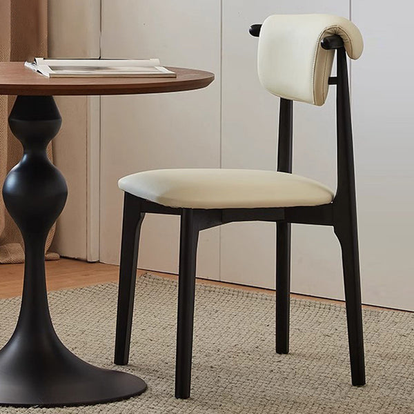 Contemporary Scandinavian Square Wood Leather Upholstered Dining Chair Backrest For Dining Room