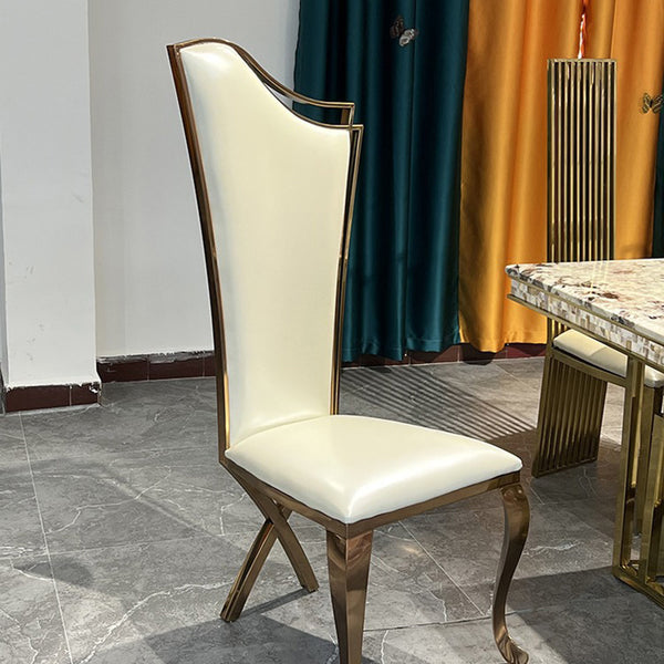 Contemporary Scandinavian Trapezoidal Square Leather Metal Dining Chair Backrest Armless For Dining Room