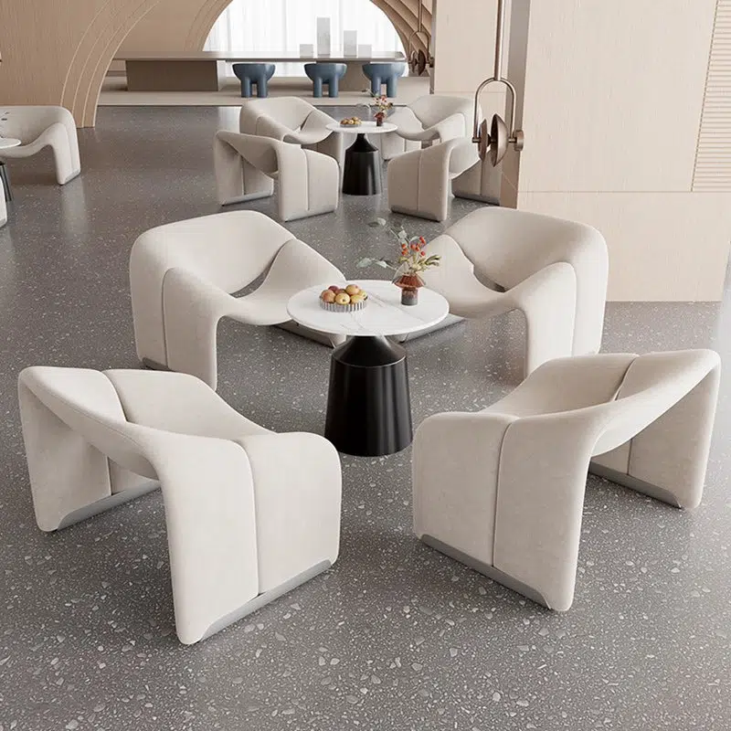Contemporary Scandinavian Velvet Iron M-shaped Arc Accent Chair Backrest Armrest For Living Room