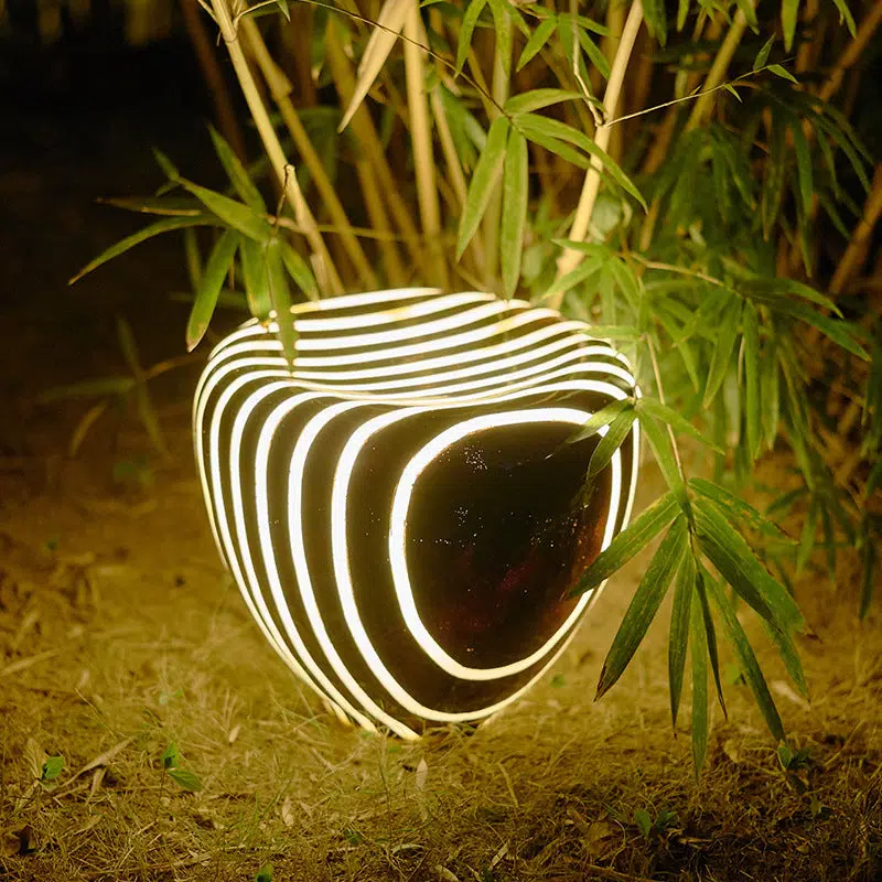 Contemporary Simplicity Solar Resin Simulation Striped Stone LED Outdoor Light For Garden