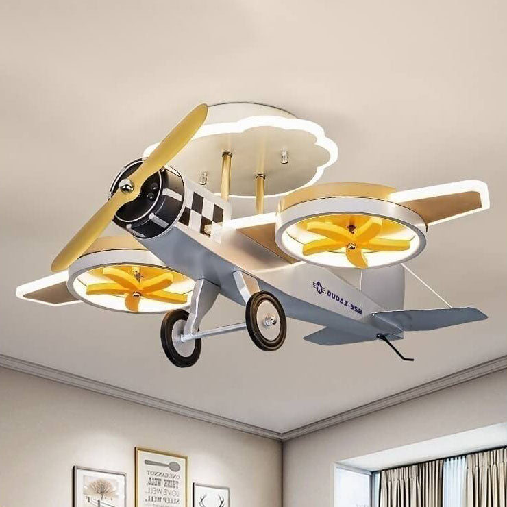 Creative Cartoon Airplane Iron Acrylic LED Kids Semi-Flush Mount Ceiling Light