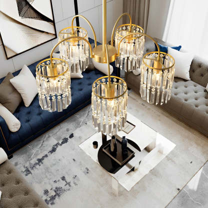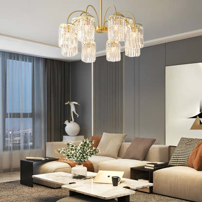 Crystal Shade Copper Curved Arms Luxury Post-Modern Chandelier Light