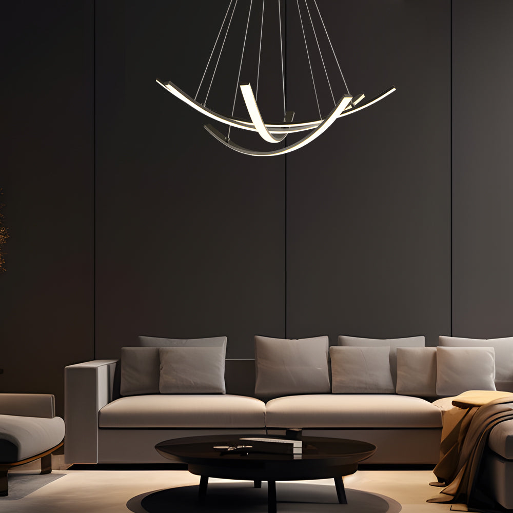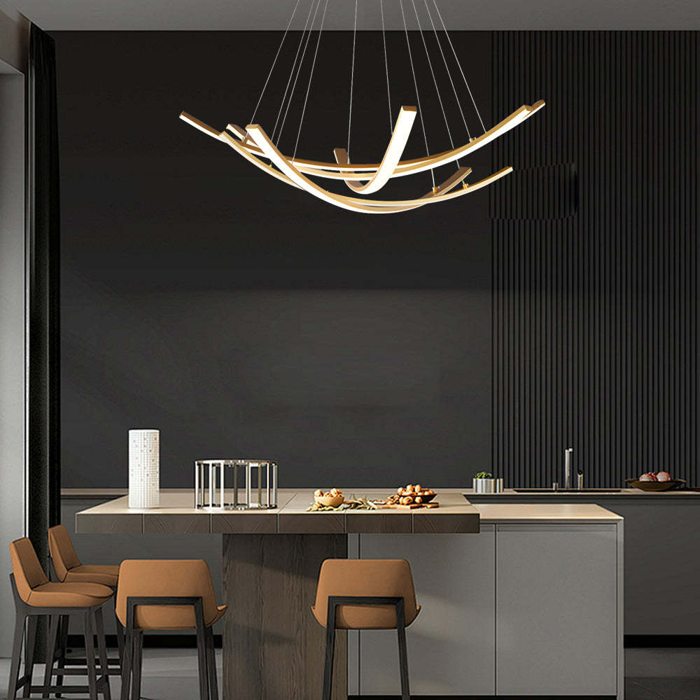 - Inspired by the natural beauty of intertwining branches, our Modern Copper Strip LED Pendant Light transforms any space into a work of art. Crafted with eight thin wires supporting four gracefully curved copper strips, this chandelier creates an intricate, artistically interlaced display.