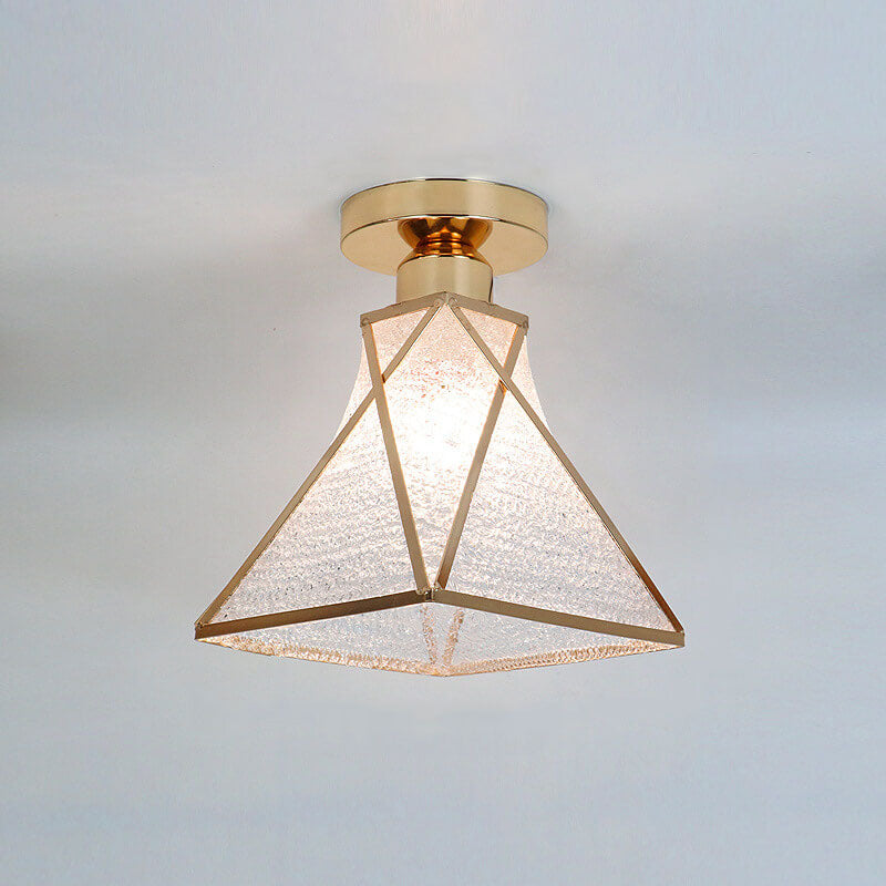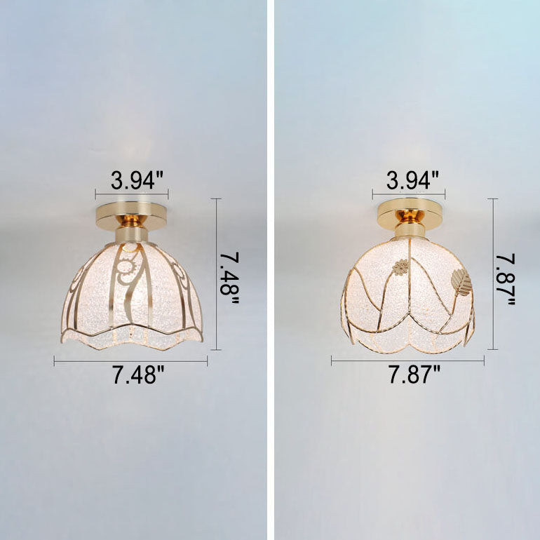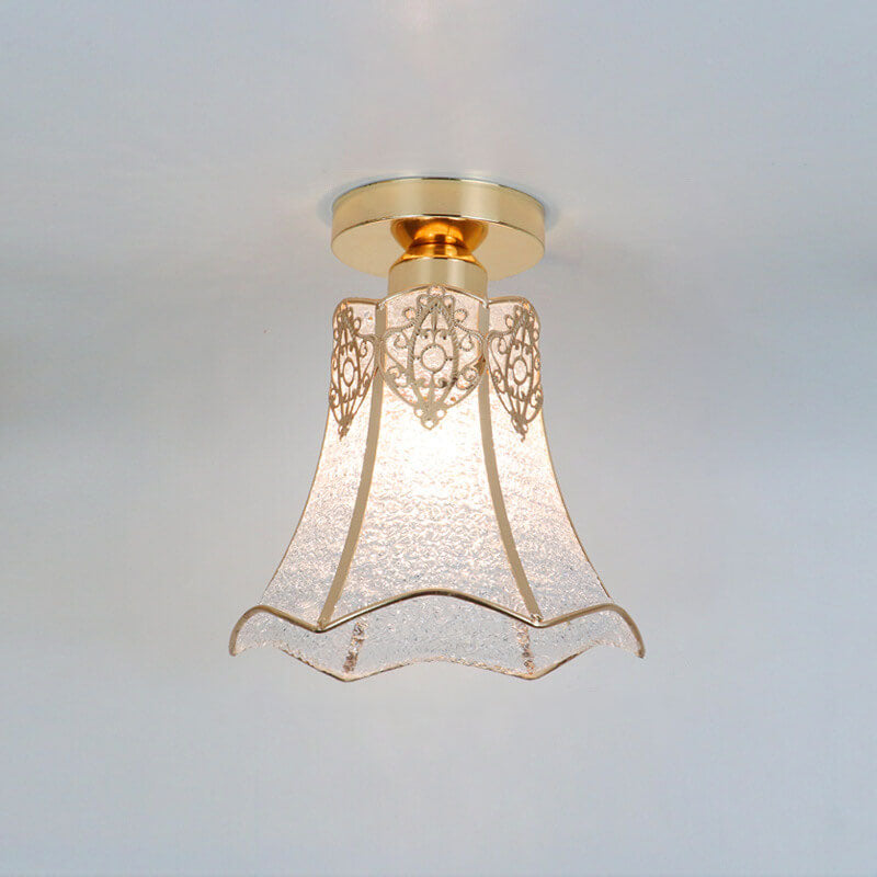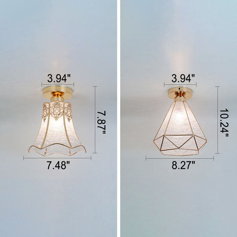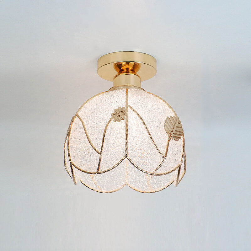 European Light Luxury Glass Gold 1-Light Semi-Flush Mount Ceiling Light