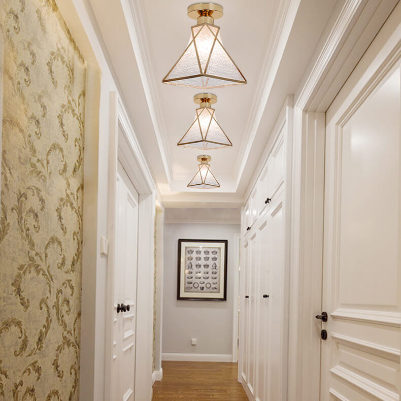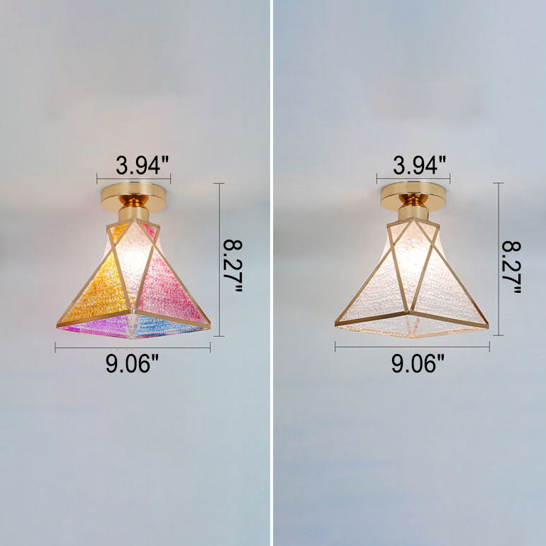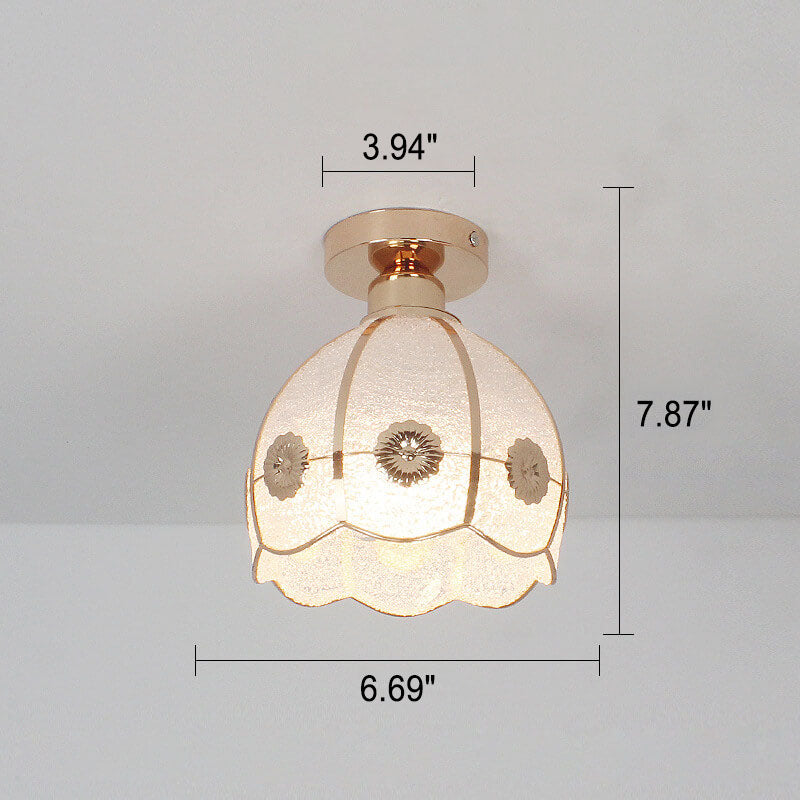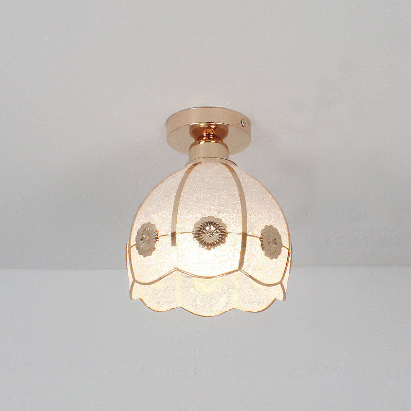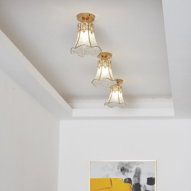 European Light Luxury Glass Gold 1-Light Semi-Flush Mount Ceiling Light