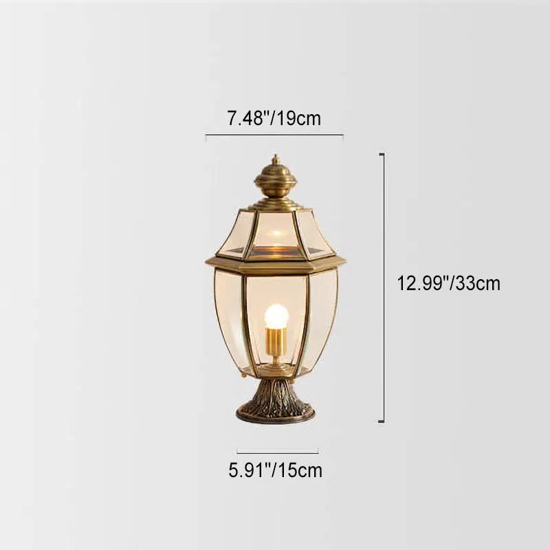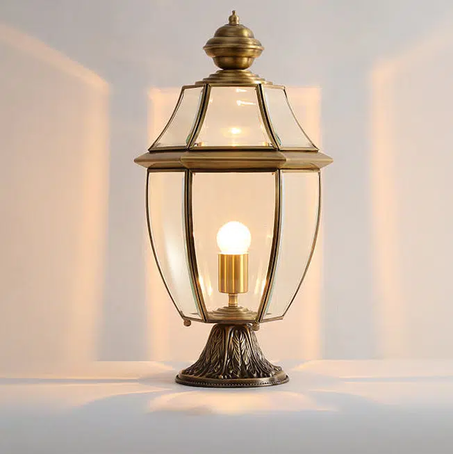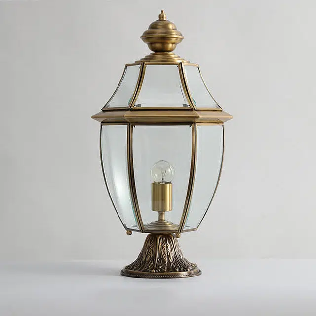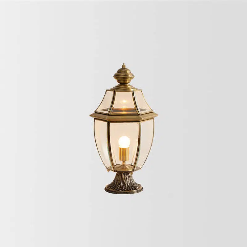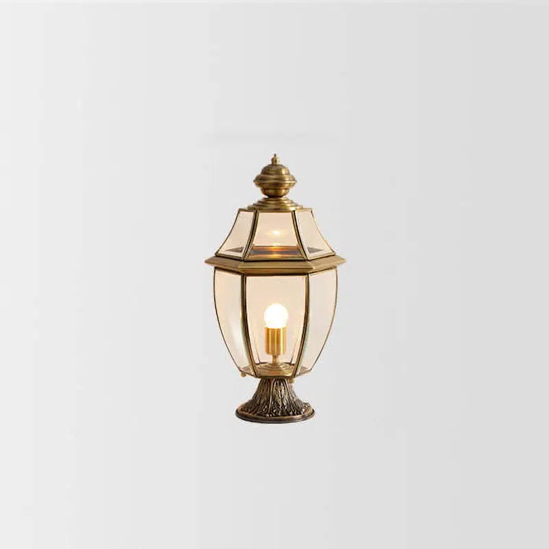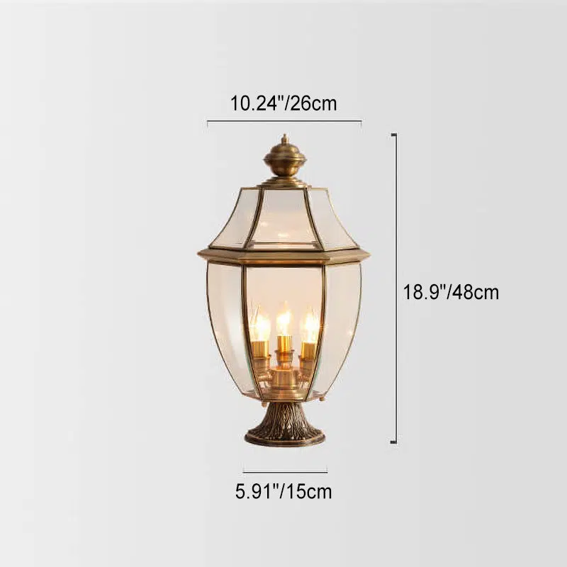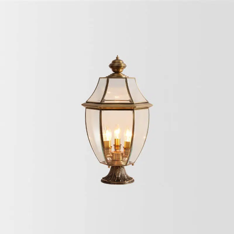 European Luxury All Copper Clear Glass Lantern Post 1/3 Light Waterproof Patio Landscape Light