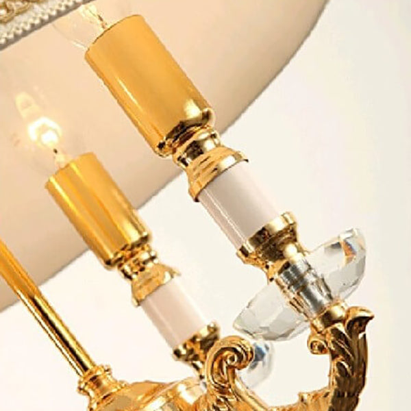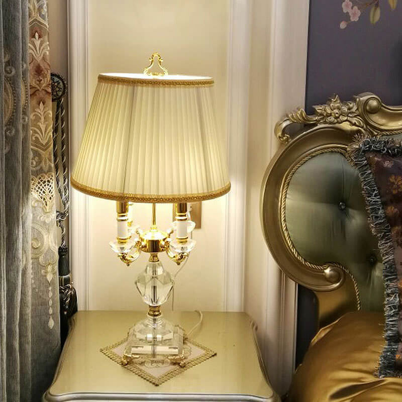 European Luxury Fabric Candle Holder with Crystal Base 4-Light Table Lamp