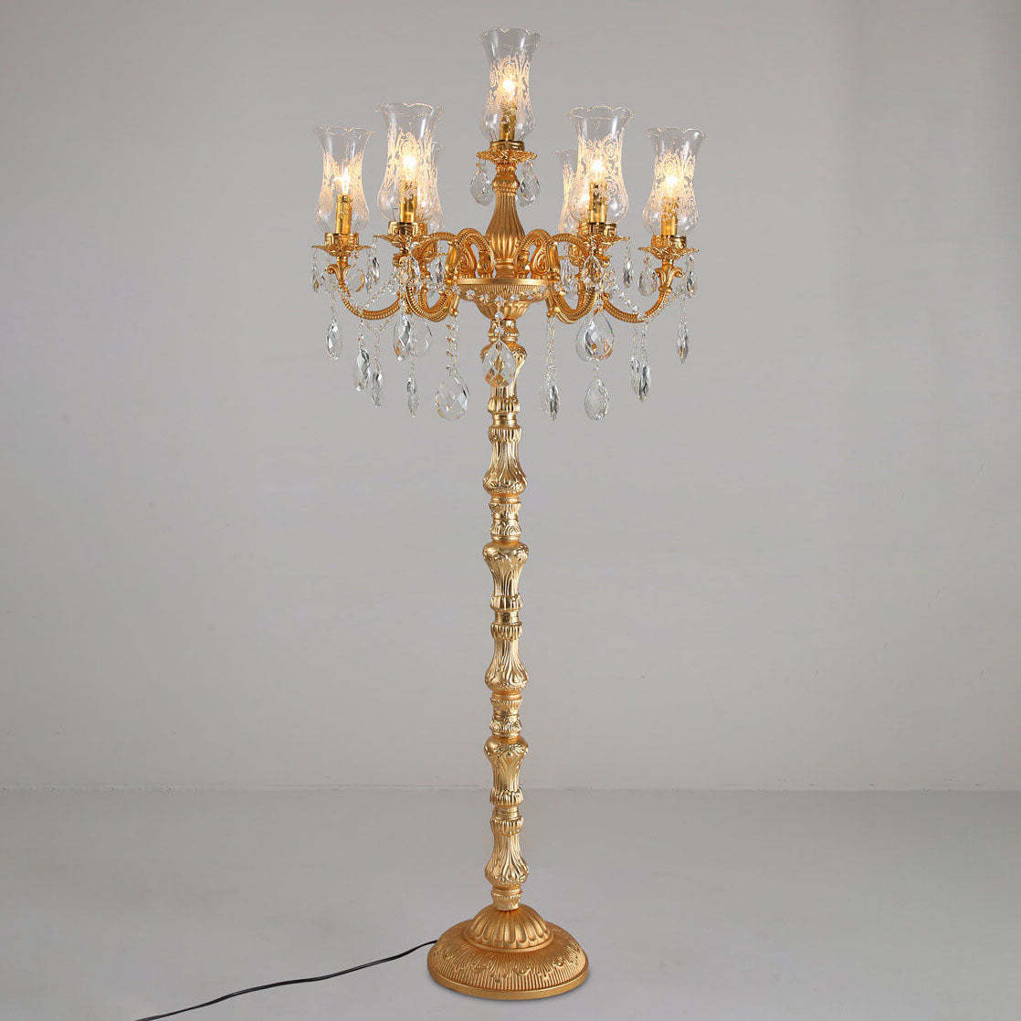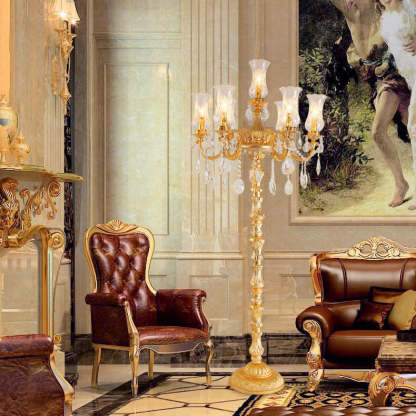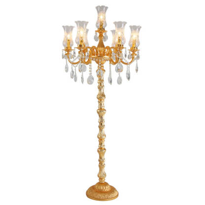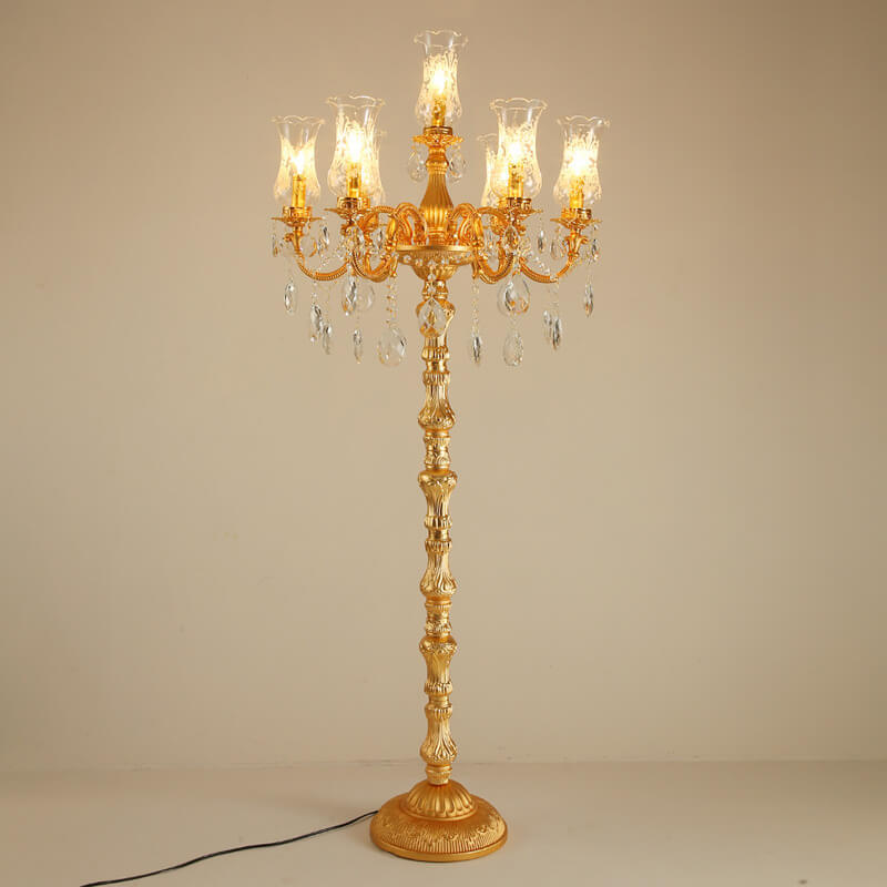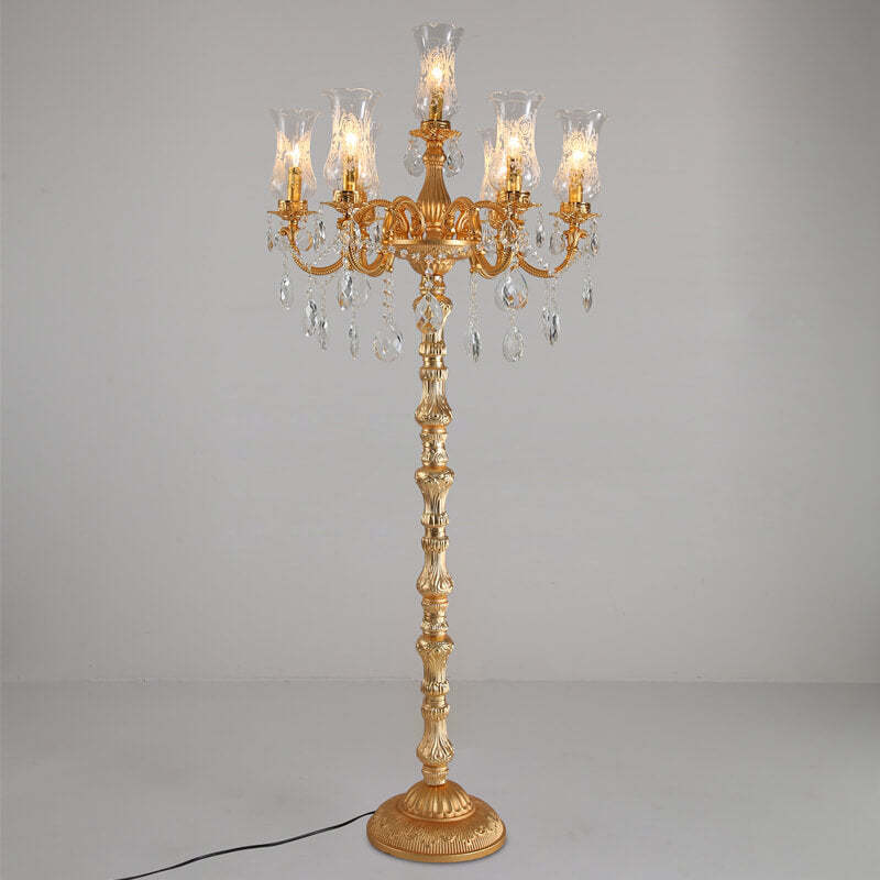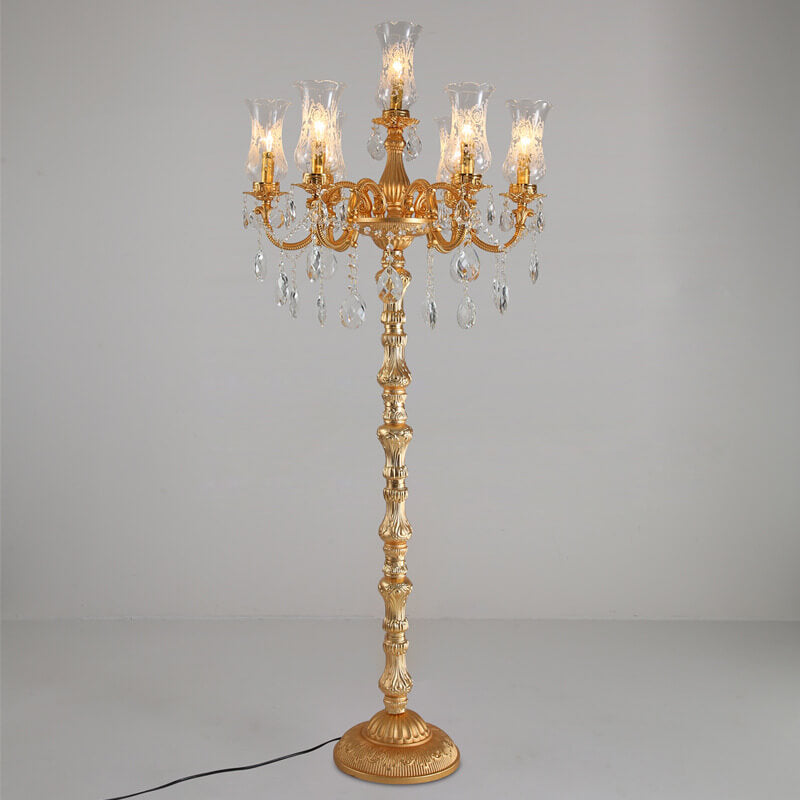 European Luxury Golden Crystal Zinc Alloy Candle Holder 7-Light Standing Floor Lamp