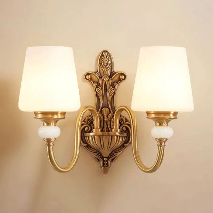 European Luxury Jade Glass Brass Cone Cup Shade 1/2 Light Wall Sconce Lamp