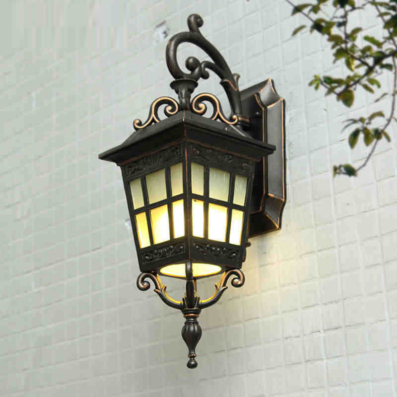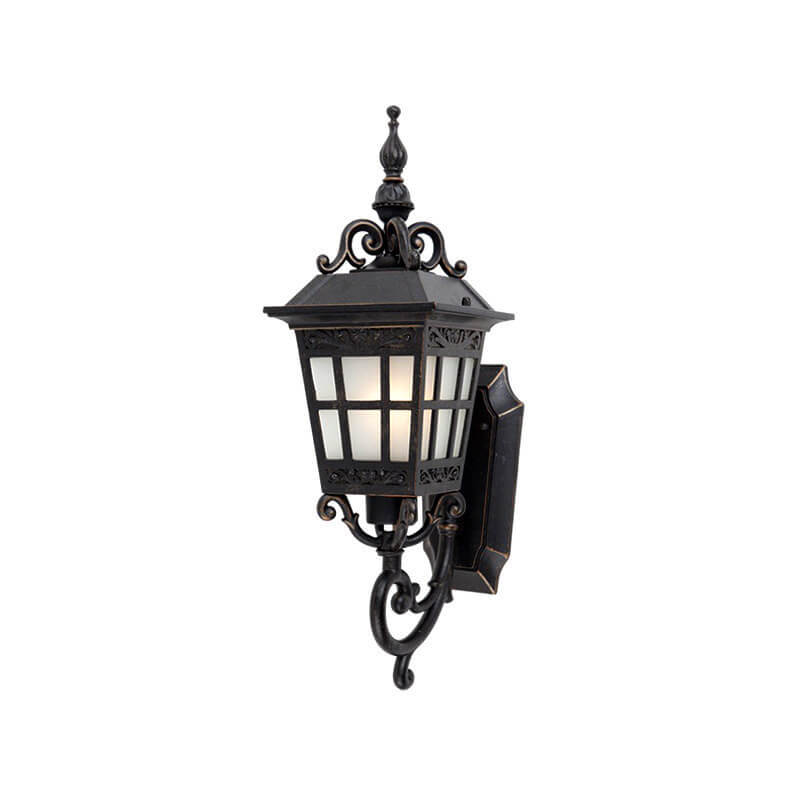 European Outdoor Square Lantern Carved 1-Light Waterproof Wall Sconce Lamp