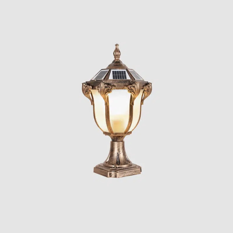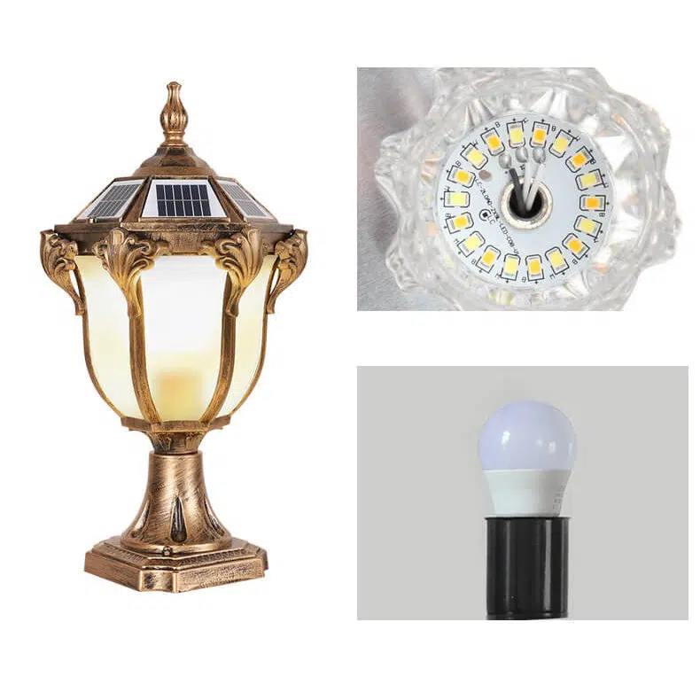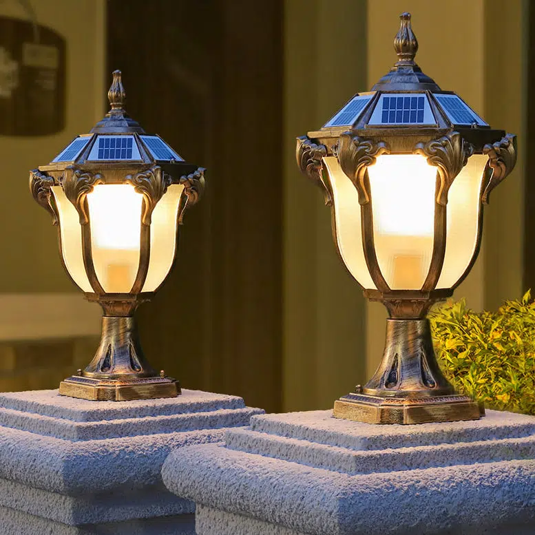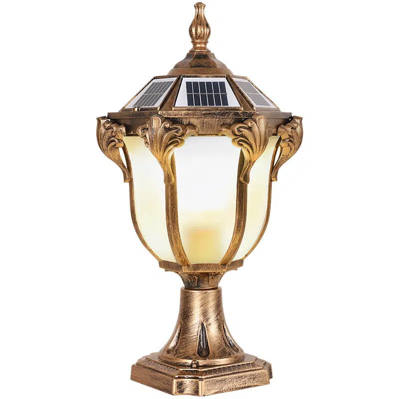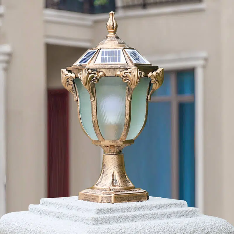 European Retro Die-Cast Aluminum Glass Solar Waterproof Outdoor Garden Landscape Column Light