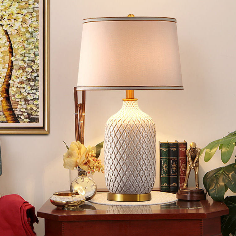 European Vintage Striped Ceramic Base Fabric 1-Light Table Lamp