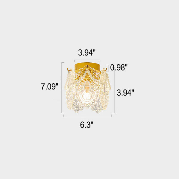 French Palace Glass Pearl Chain Cylinder 1-Light Semi-Flush Mount Ceiling Light