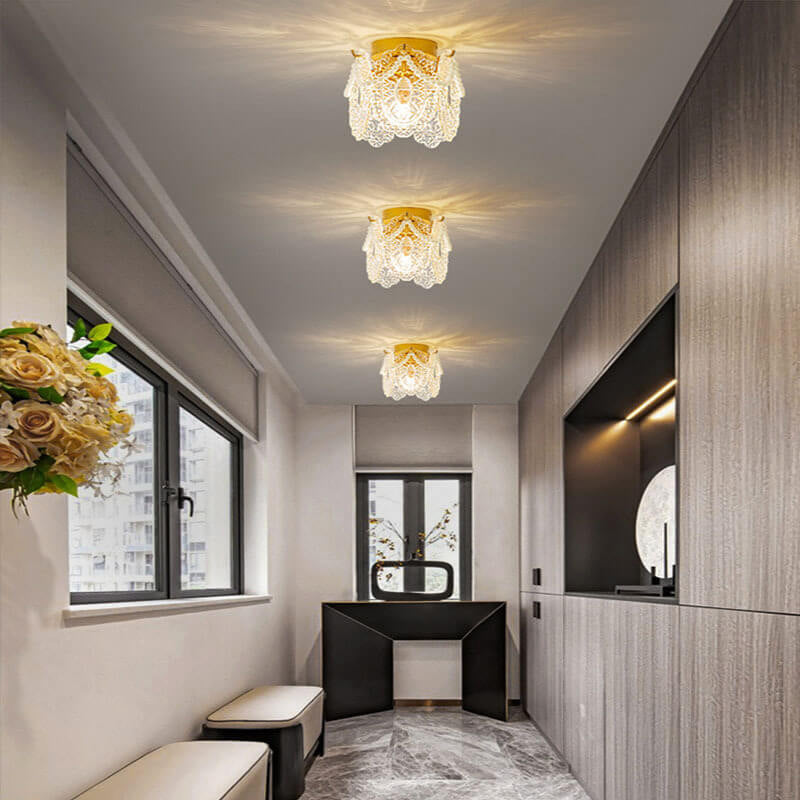French Palace Glass Pearl Chain Cylinder 1-Light Semi-Flush Mount Ceiling Light