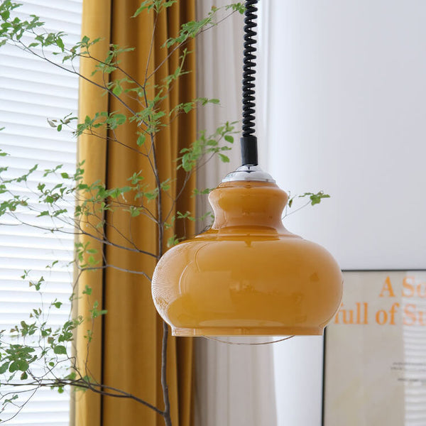 French Vintage Glass Round Gourd 1-Light Pendant Light