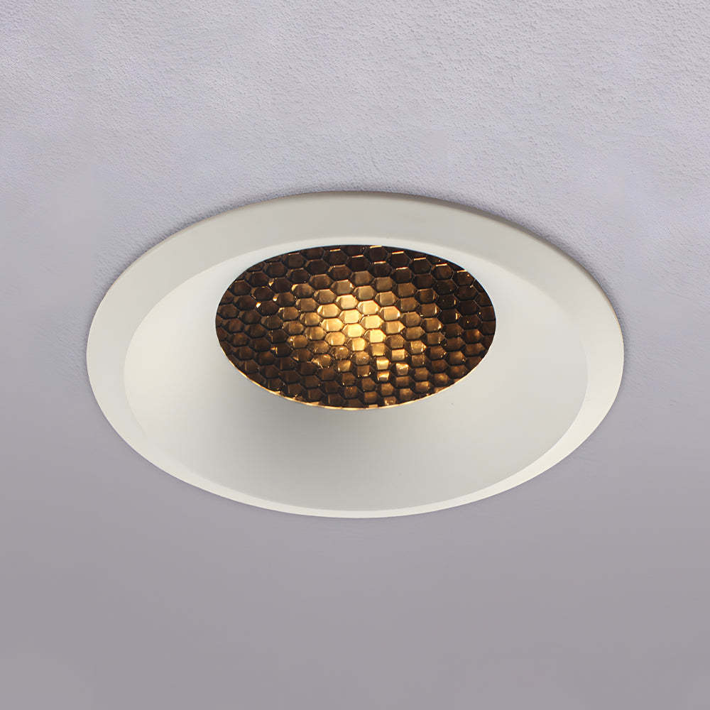 - This Honeycomb LED Recessed Downlight is made of high-quality aluminum. With a matte white finish, it blends seamlessly into any interior, adding a touch of modern elegance. It can be easily installed on the ceiling for a seamless, clean look. Whether illuminating a cozy corner of your living room, highlighting artwork in your hallway, or enhancing the ambiance of your dining area, this downlight is versatile and practical.