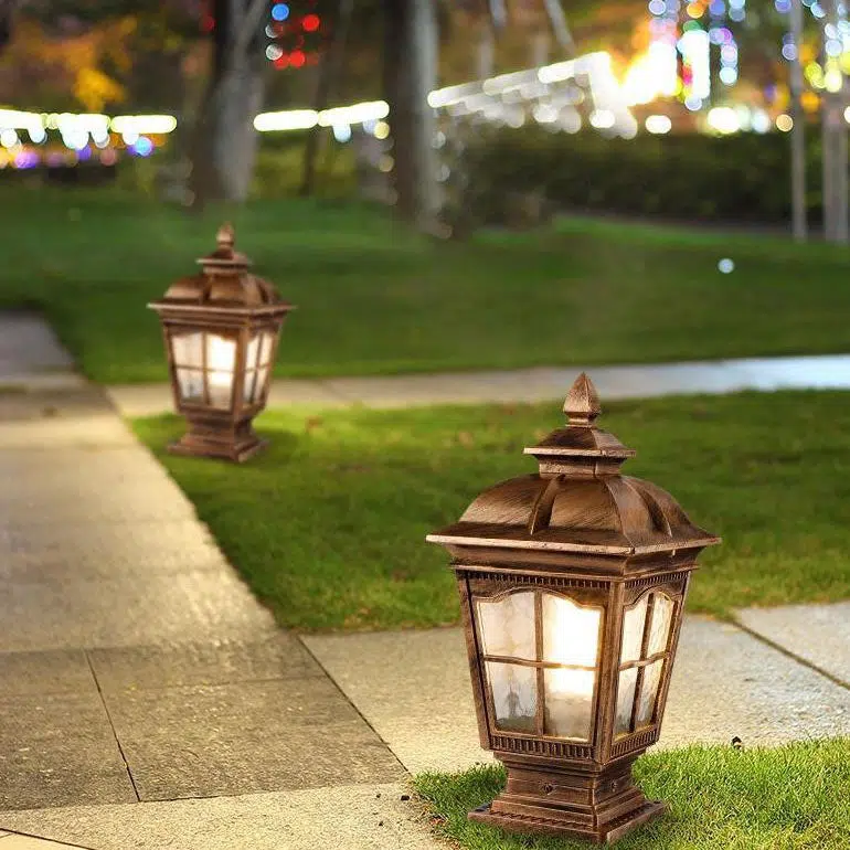 Industrial Aluminum Pagoda Water-grain Glass 1-Light Outdoor Lawn Landscape Light