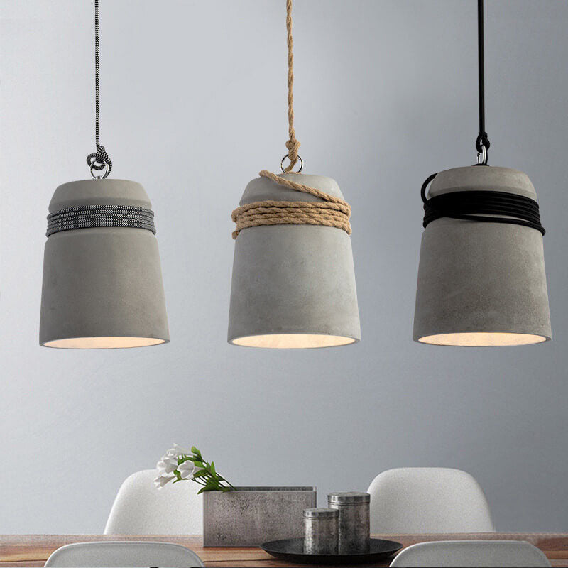 Industrial Cement Column Rope Wire 1-Light Pendant Light