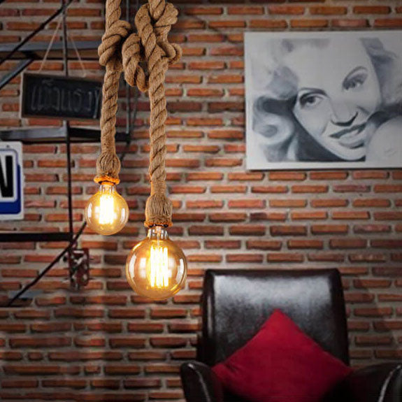 Industrial Hemp Rope Hanging 1/2-Light Pendant Light