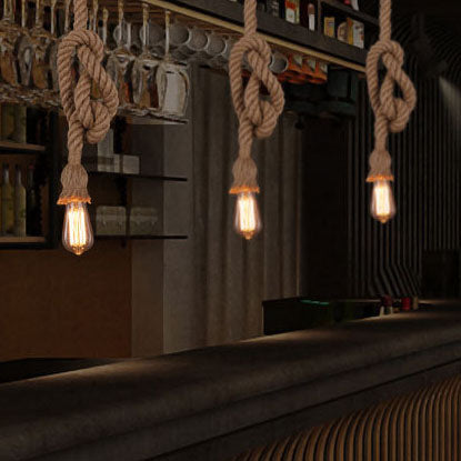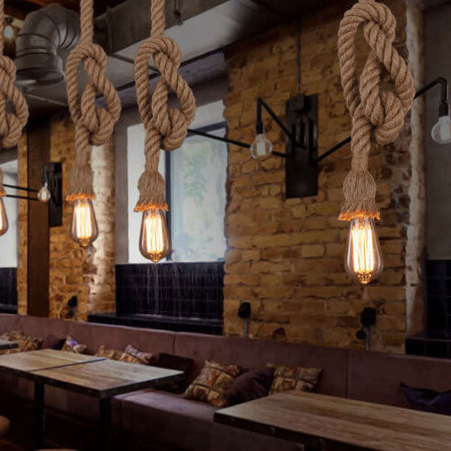 Industrial Hemp Rope Hanging 1/2-Light Pendant Light