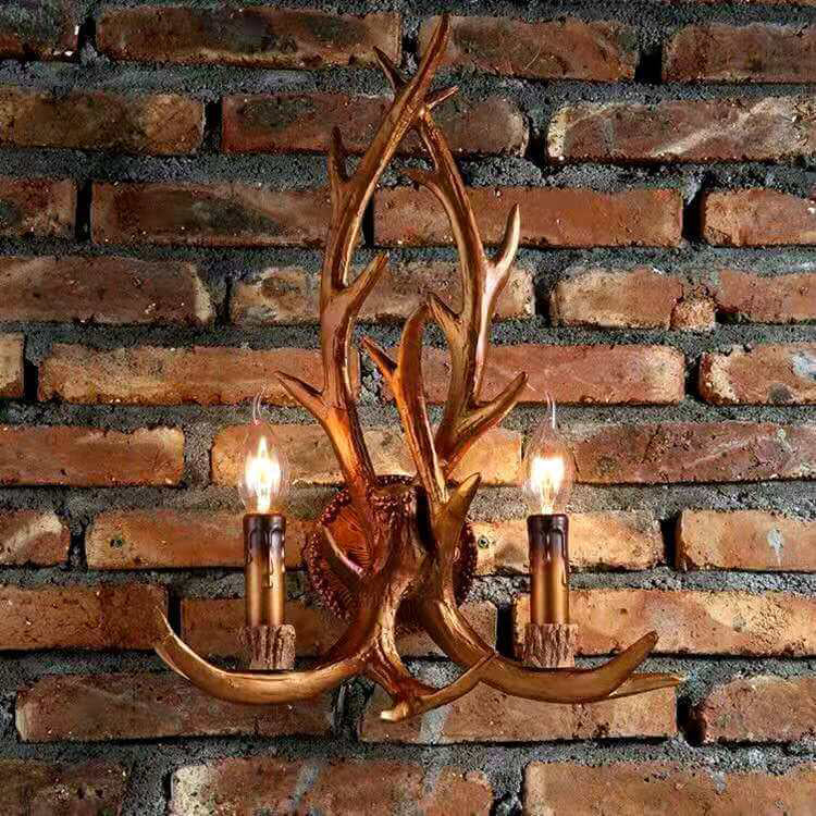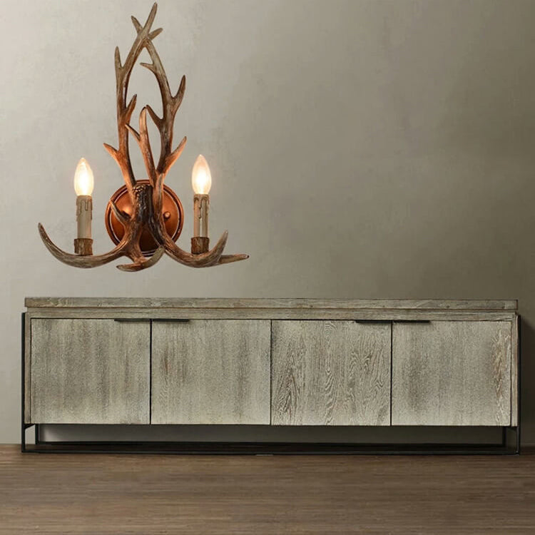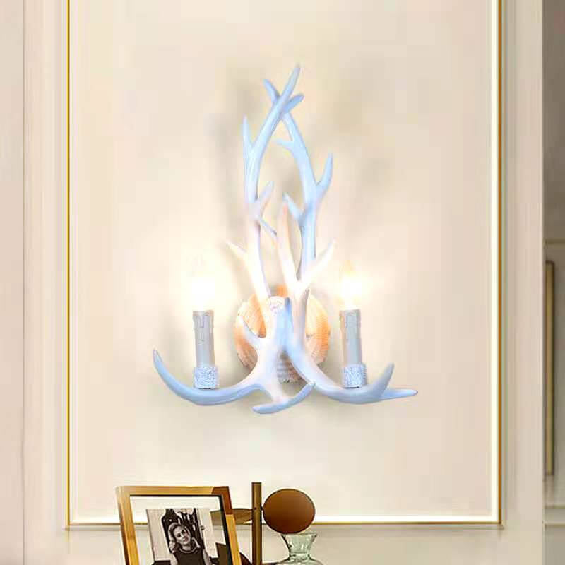Industrial Resin Retro Antler 2-Light Creative Wall Sconce Lamp
