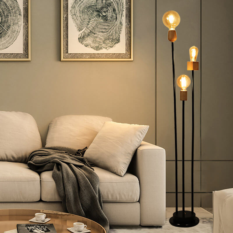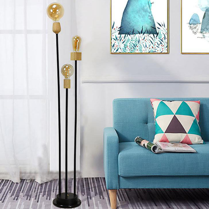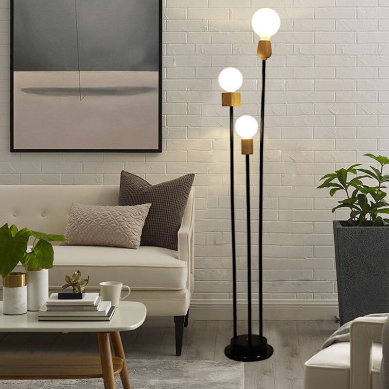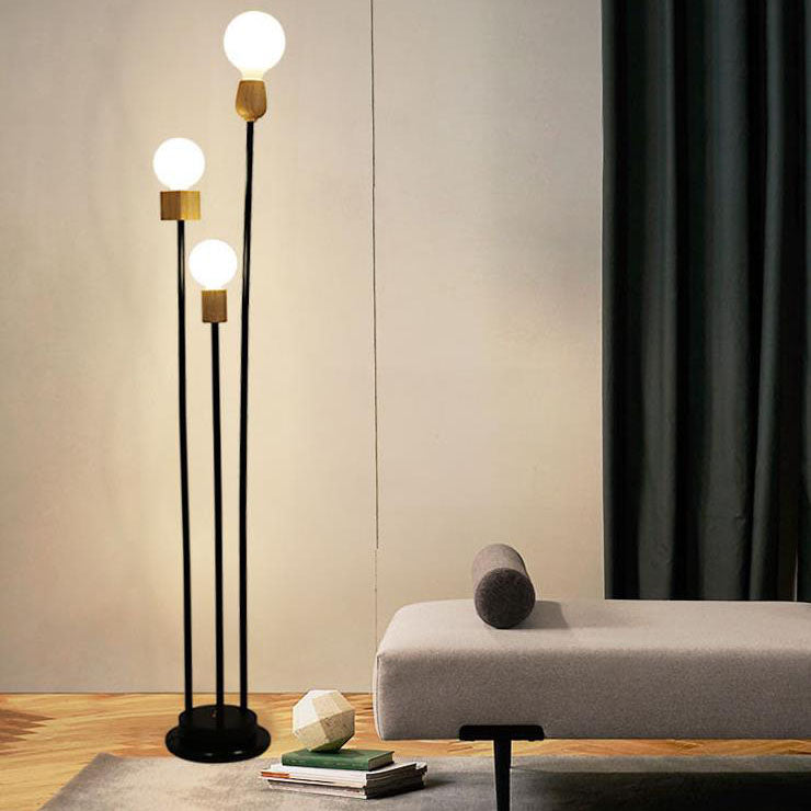 Industrial Retro Iron Black-Finished Frame Glass Ball 3-Light Standing Floor Lamp