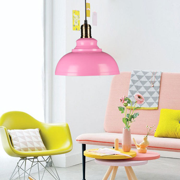 Industrial Simple Dome Round Pot Lid Iron 1-Light Pendant Light