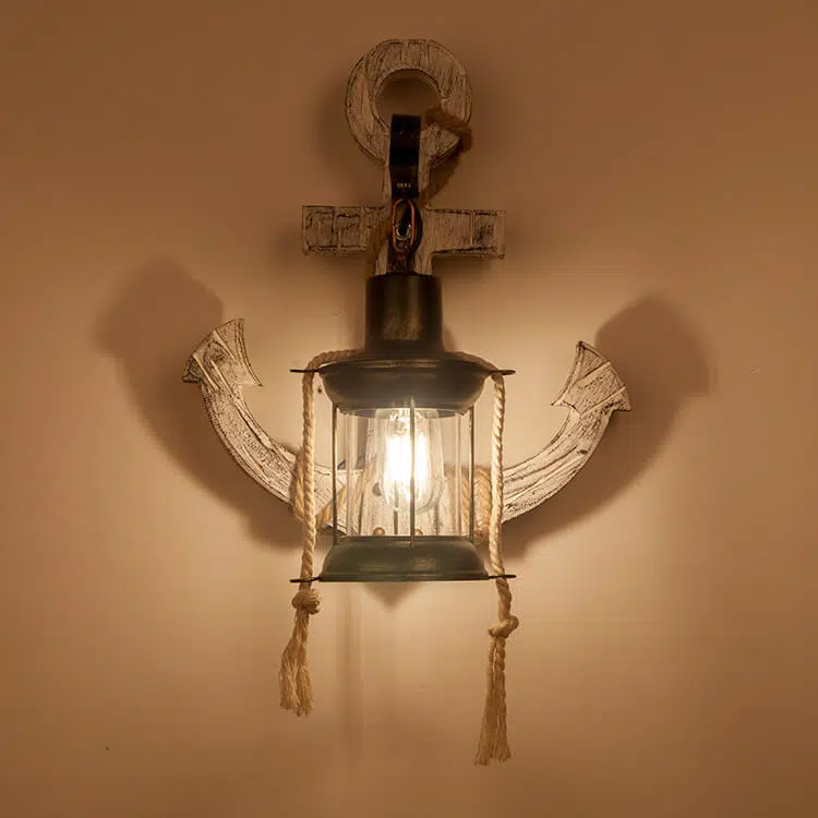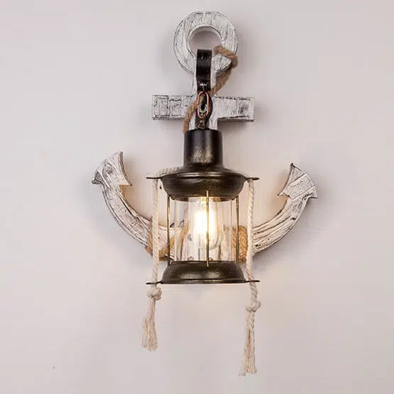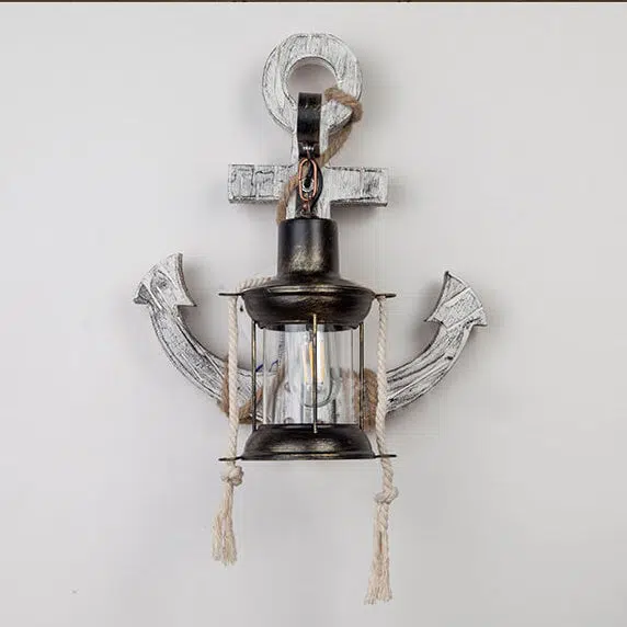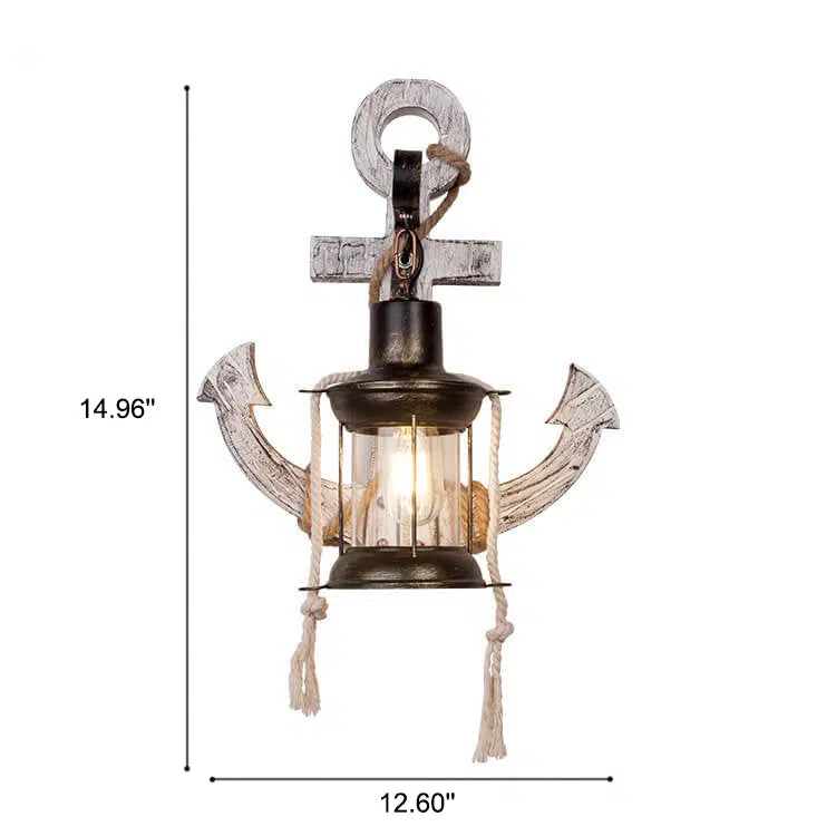 Industrial Vintage Boat Anchor Solid Wooden 1-Light Wall Sconce Lamp