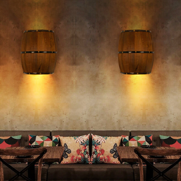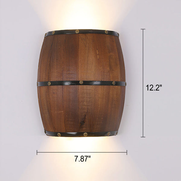 Industrial Vintage Half Barrel Wood 2-Light Wall Sconce Lamp