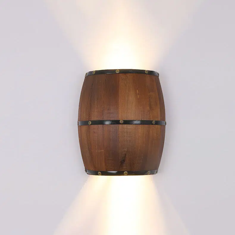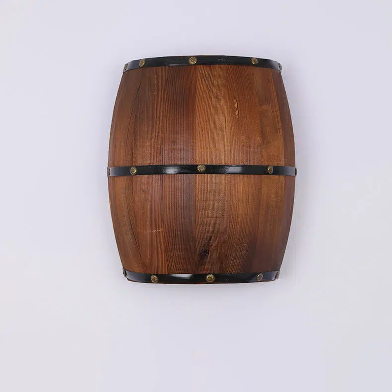 Industrial Vintage Half Barrel Wood 2-Light Wall Sconce Lamp