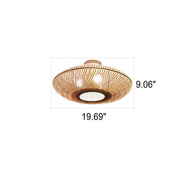 Japanese Bamboo Weaving Round Flying Saucer 3-Light Semi-Flush Mount Light