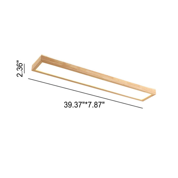 Japanese Minimalist Log Rectangular Walnut LED Flush Mount Ceiling Light