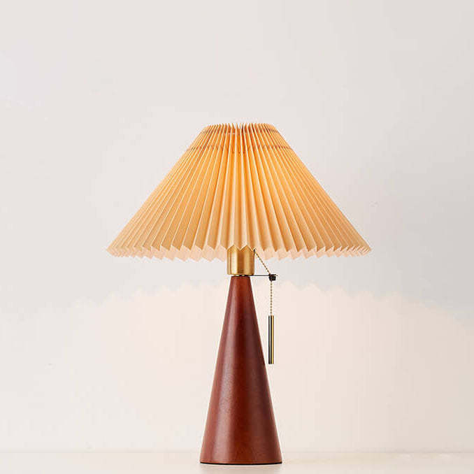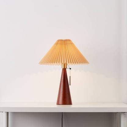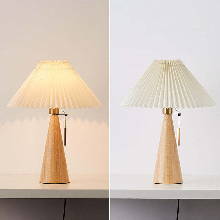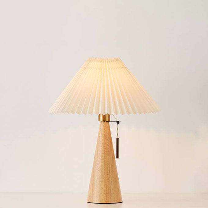 Japanese Minimalist Vintage Pleated Wooden Fabric LED Table Lamp