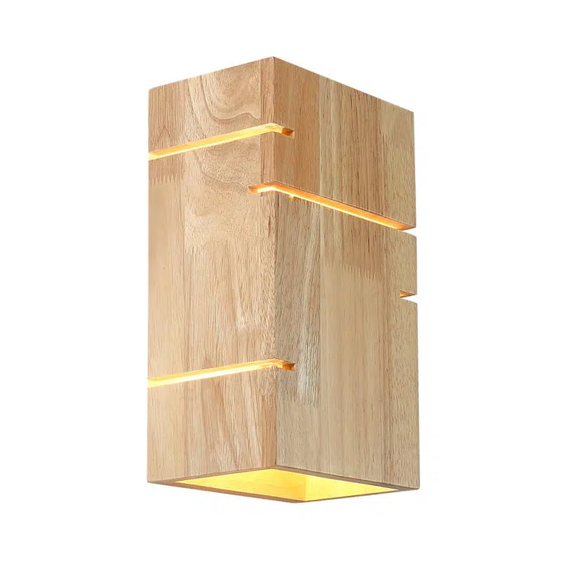 Japanese Minimalist Wooden Square 2-Light Wall Sconce Lamp