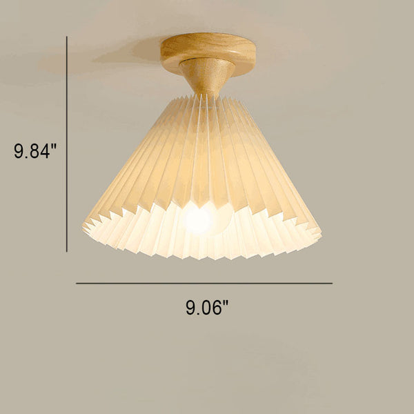 Japanese Simple Log Pleated Umbrella Cone 1-Light Semi-Flush Mount Ceiling Light