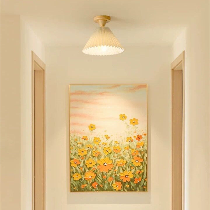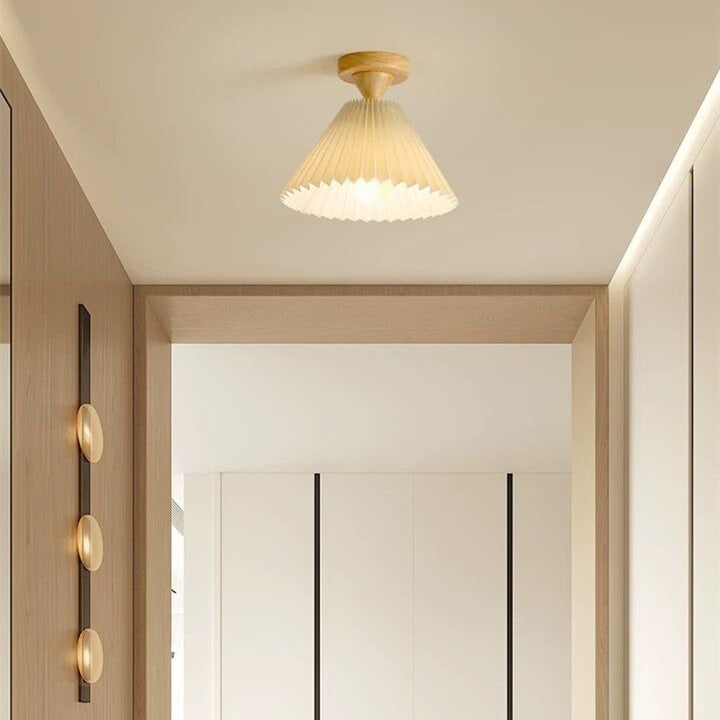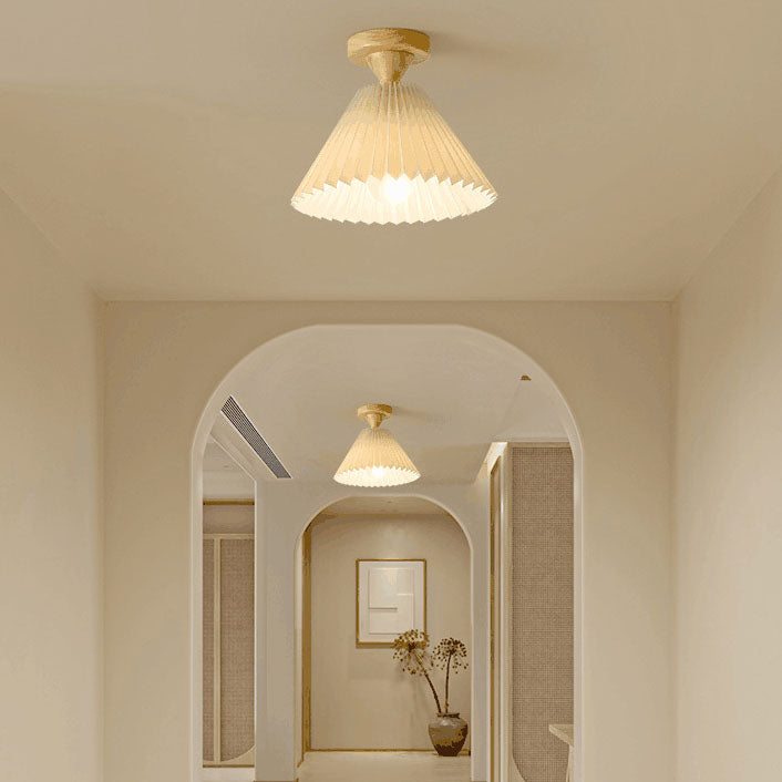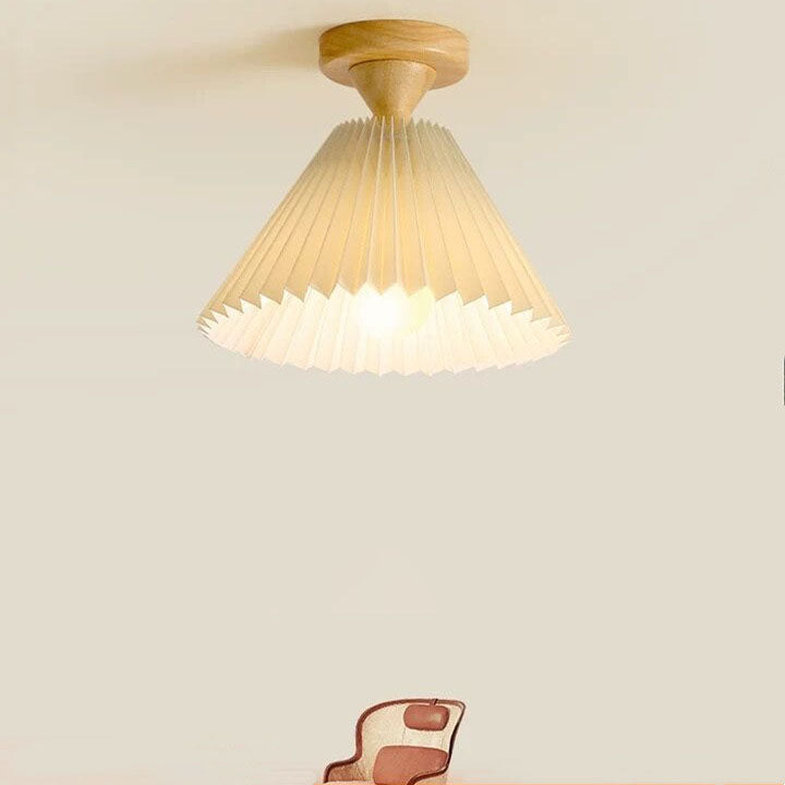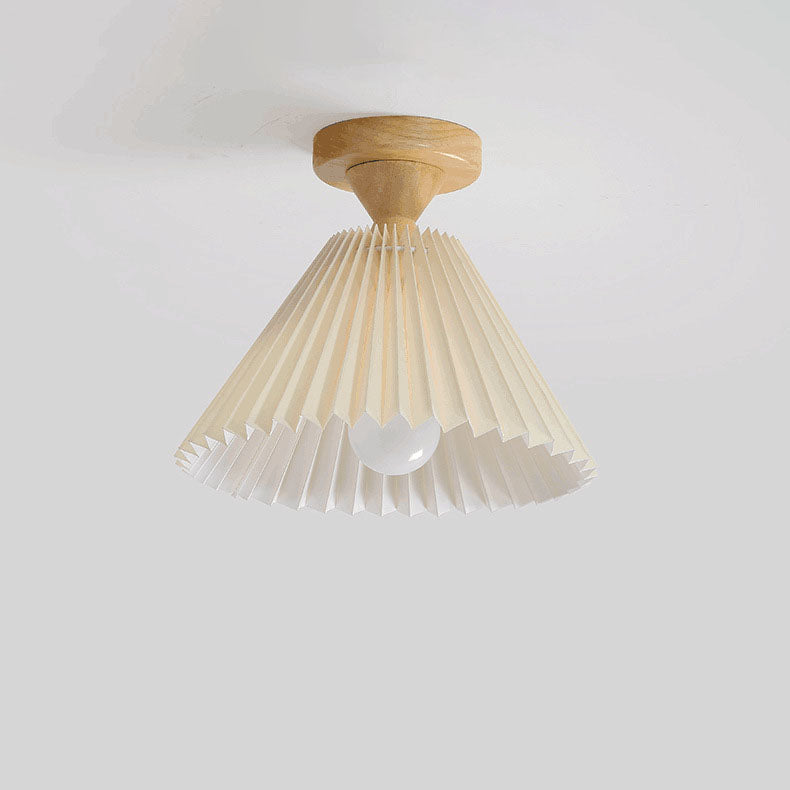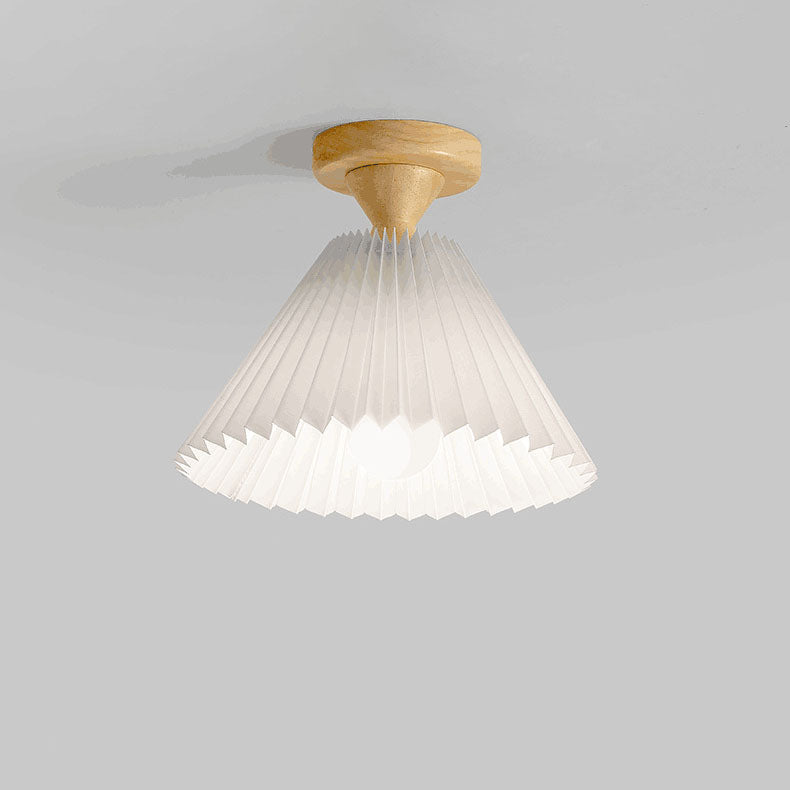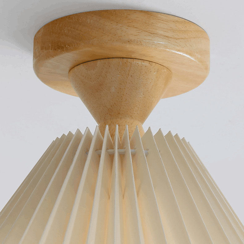 Japanese Simple Log Pleated Umbrella Cone 1-Light Semi-Flush Mount Ceiling Light