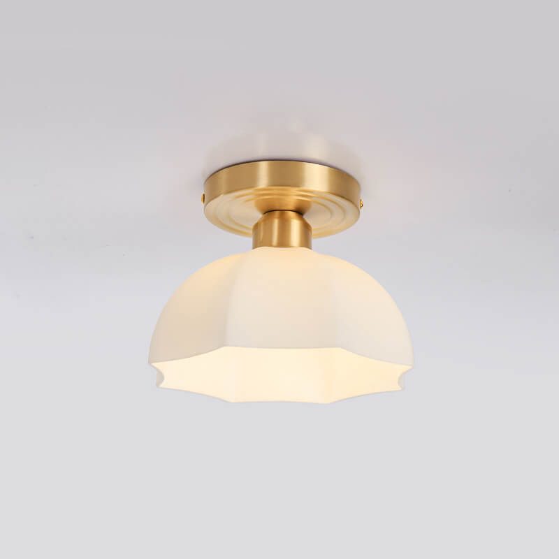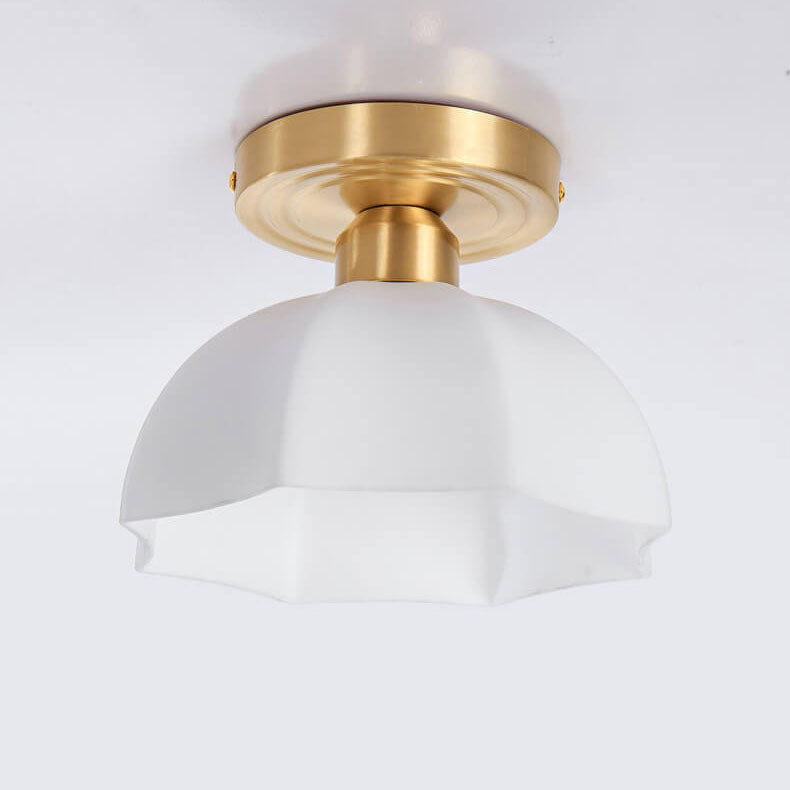 Japanese Vintage Brass Glass Dome 1-Light Semi-Flush Mount Ceiling Light