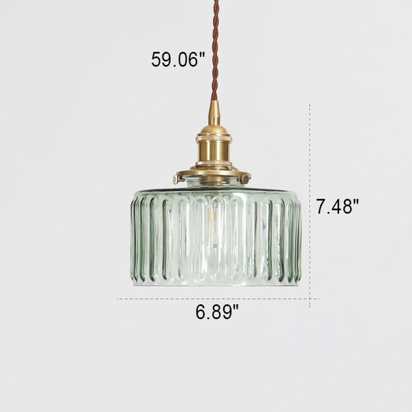 Japanese Vintage Brass Glass Round Jar 1-Light Pendant Light