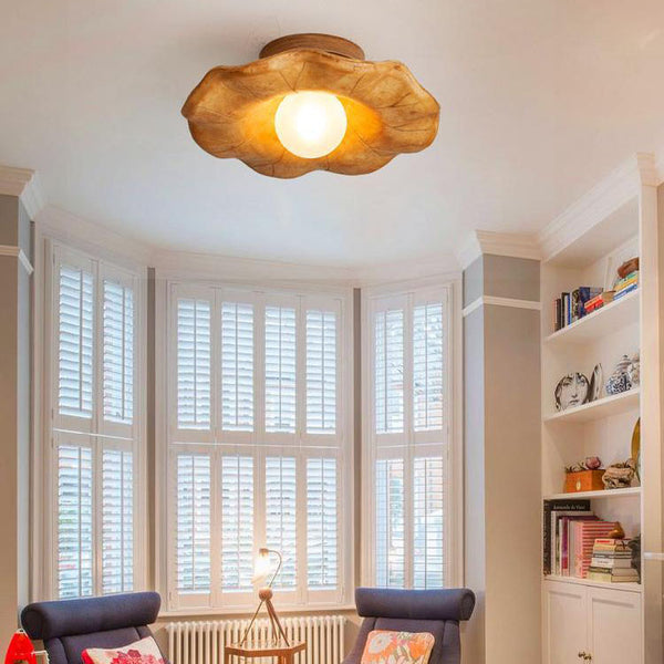 Japanese Wabi-sabi Lotus Leaf Resin 1-Light Semi-Flush Mount Ceiling Light