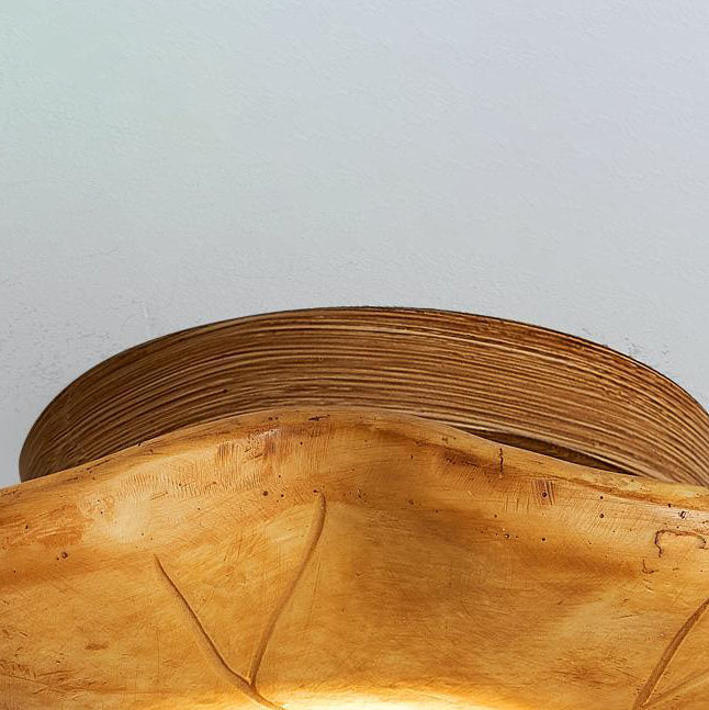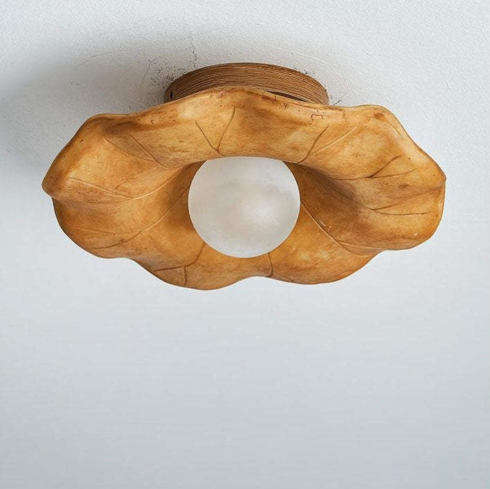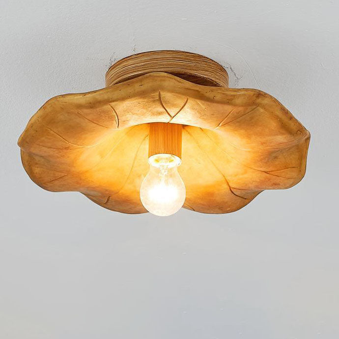 Japanese Wabi-sabi Lotus Leaf Resin 1-Light Semi-Flush Mount Ceiling Light
