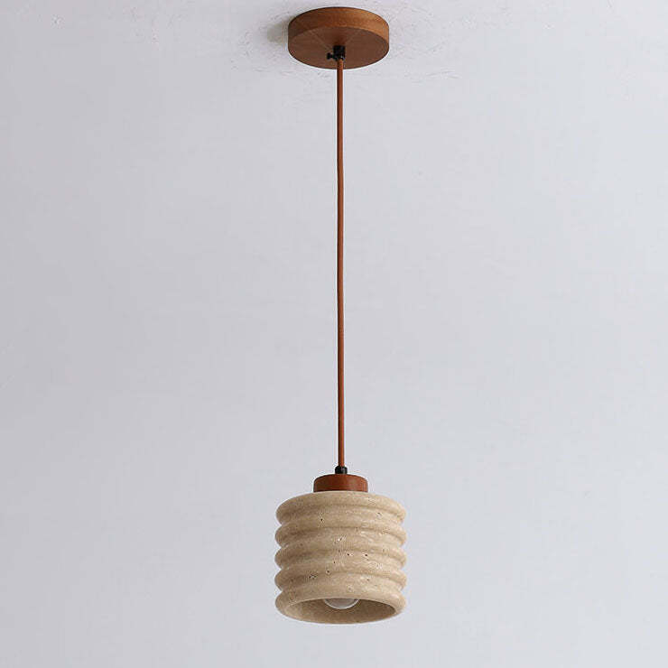 Japanese Wabi-Sabi Yellow Travertine Cylinder Lampshade Wood 1-Light Pendant Light