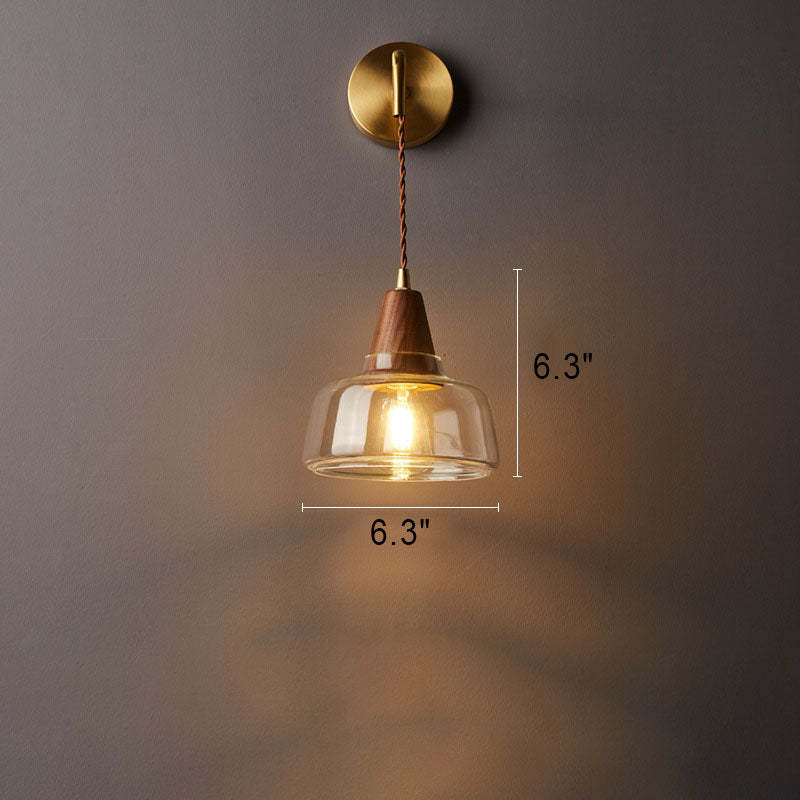 Japanese Walnut Glass Copper Cylinder 1-Light Wall Sconce Lamp