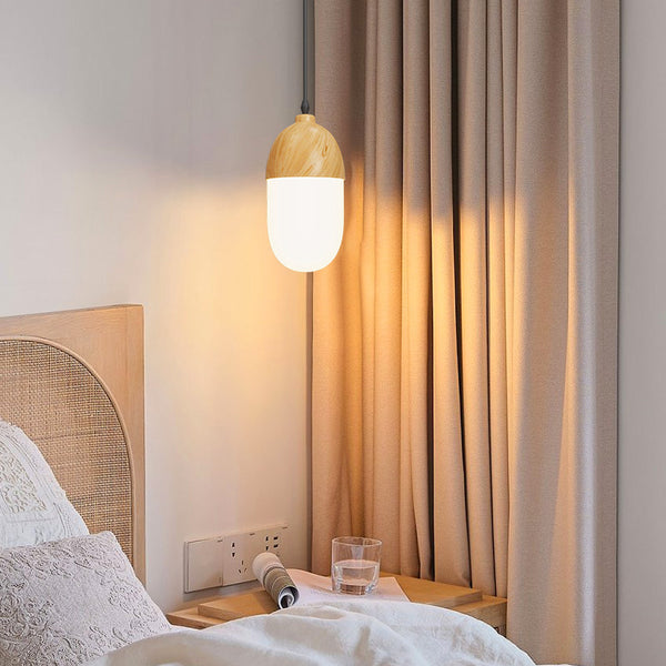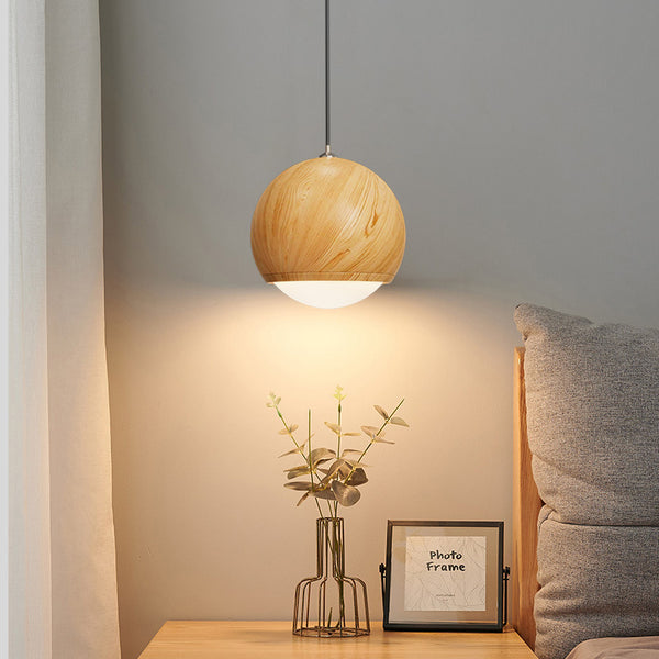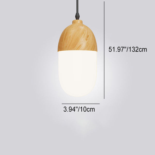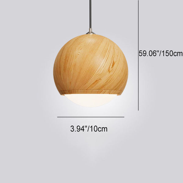 Japanese Wood Grain Round Oval Iron 1-Light Pendant Light