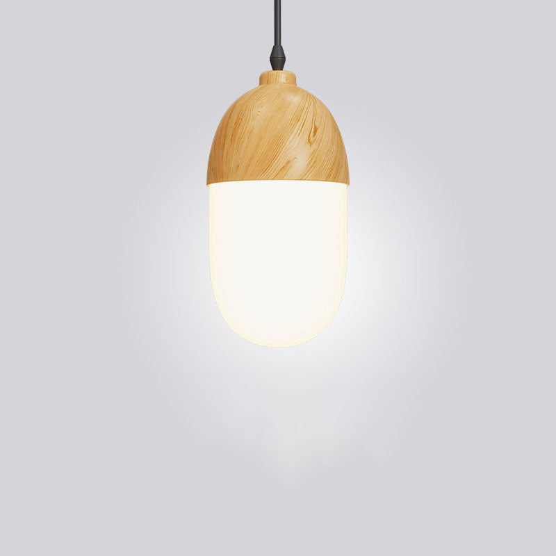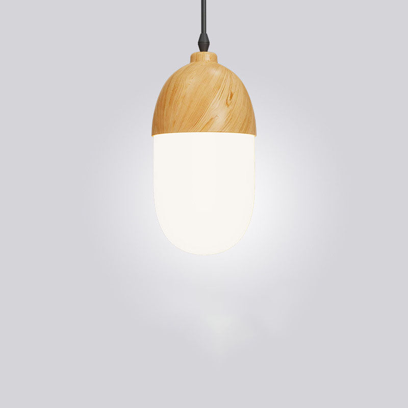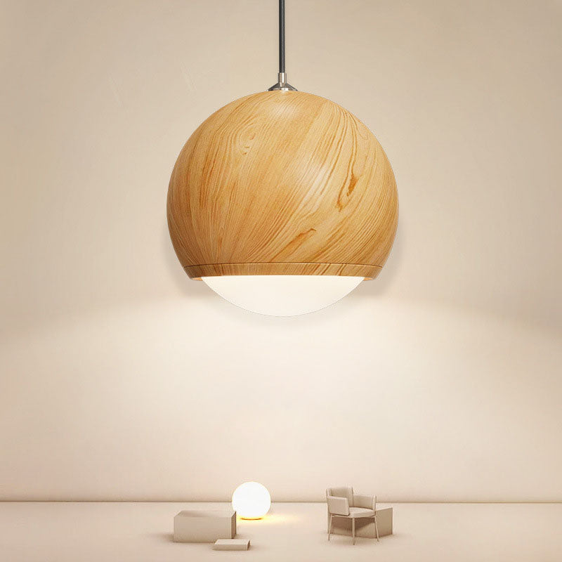 Japanese Wood Grain Round Oval Iron 1-Light Pendant Light