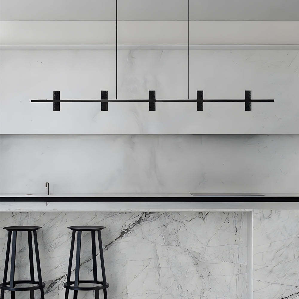 - Sleek and simple, this modern linear black copper stone pendant adds elegant lighting to a kitchen island. Available in 3-light/4-light/5-light, the LED island pendant lights up a room in style with its rustic charm and minimalist look.