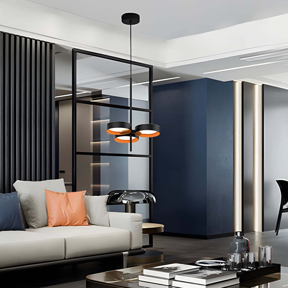 - This Light Guide Ring LED Pendant Light features multiple iron rings with LED light sources floating inside them. These LEDs edge-illuminate guide discs, redirecting brightness to their upper and lower surfaces to provide glare-free lighting for any room. Available in 1, 2, 3, 4, and 9-light configurations, this chandelier meets a variety of room sizes and lighting needs.